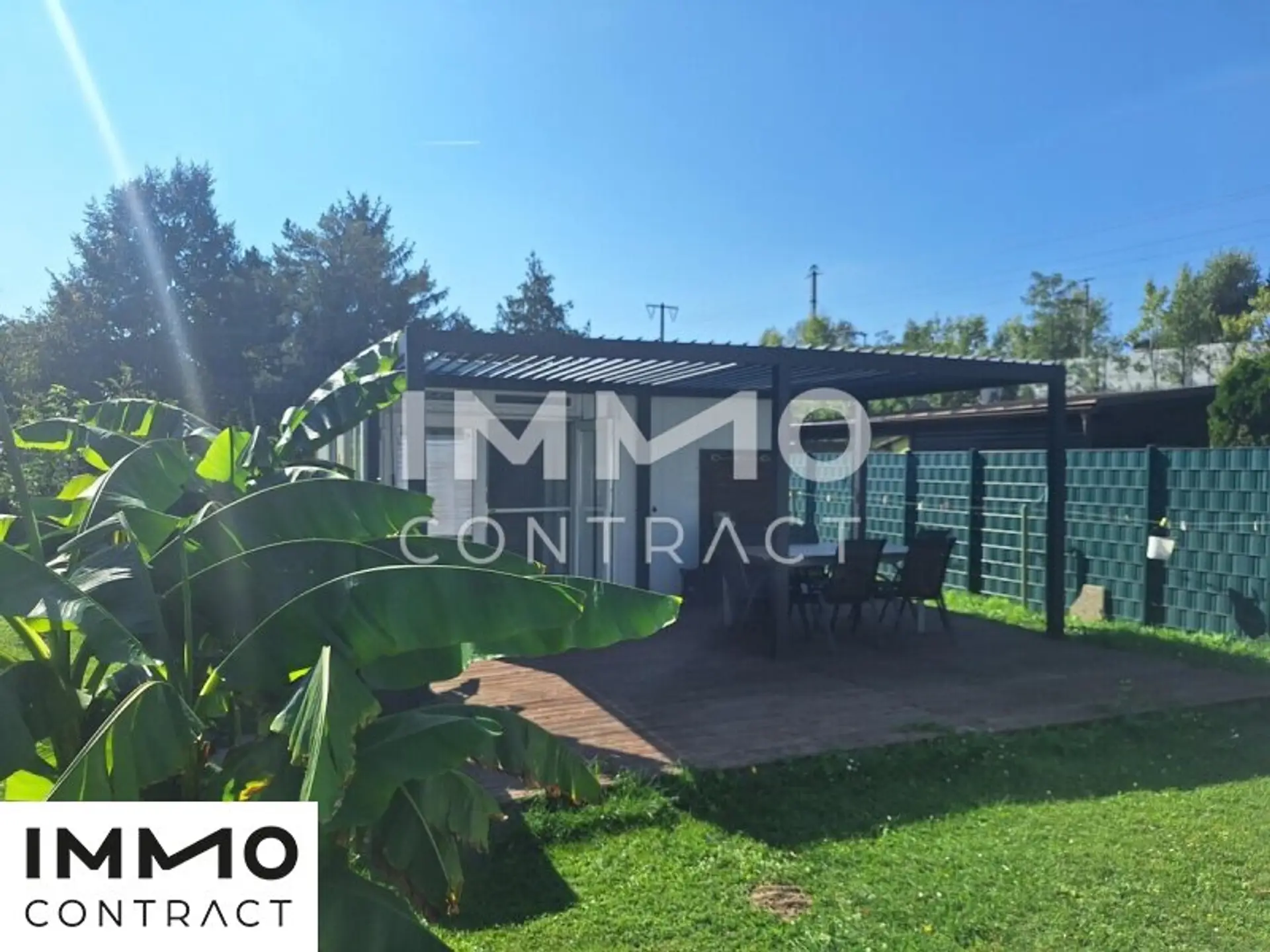 Terrasse mit ca. 30 m² Fläche und moderner Pergola