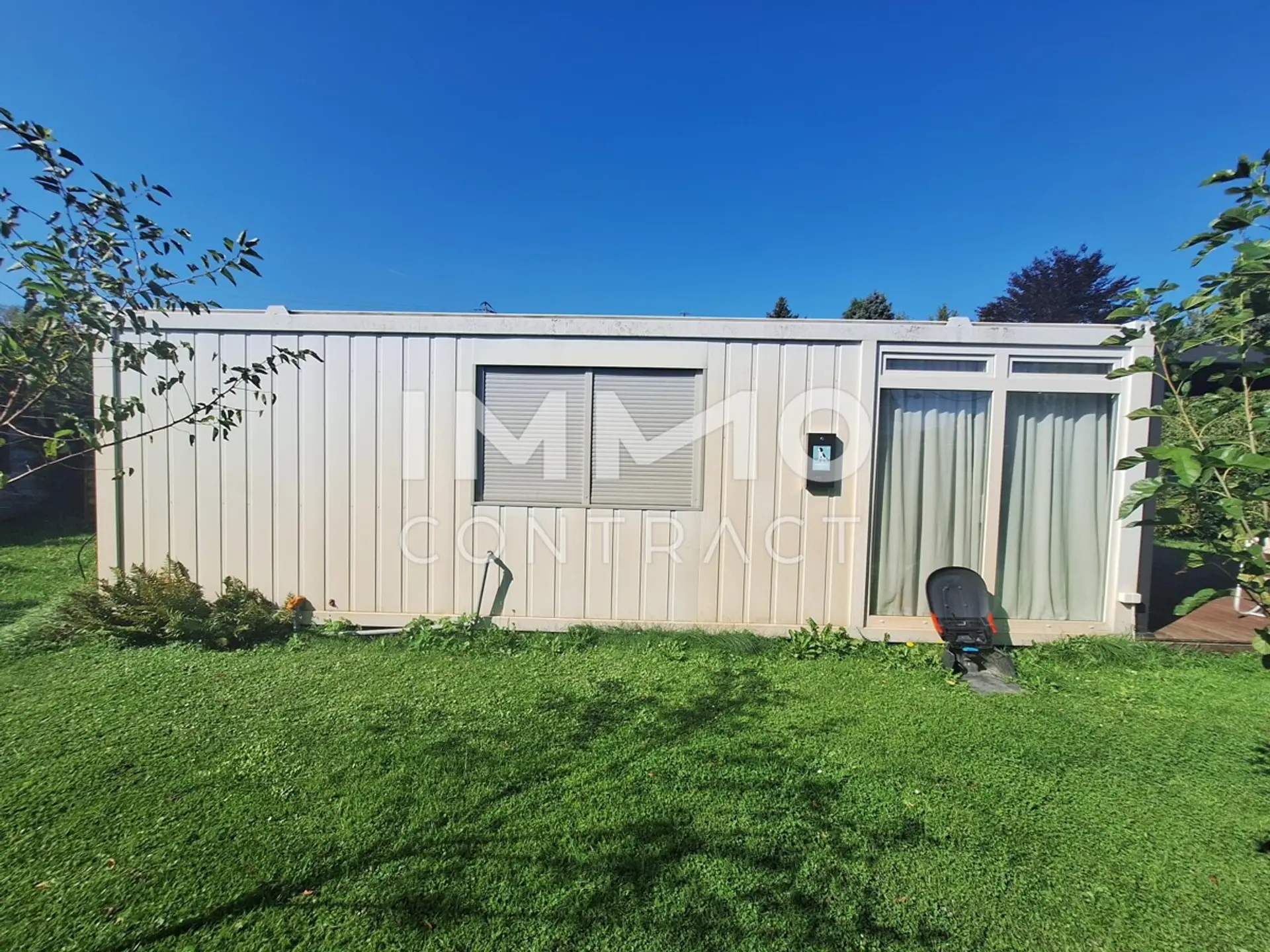 Wohncontainer (Firma Containex): ca. 45 m² (9 × 5 m), ganzjährig nutzbar dank Wärmedämmung