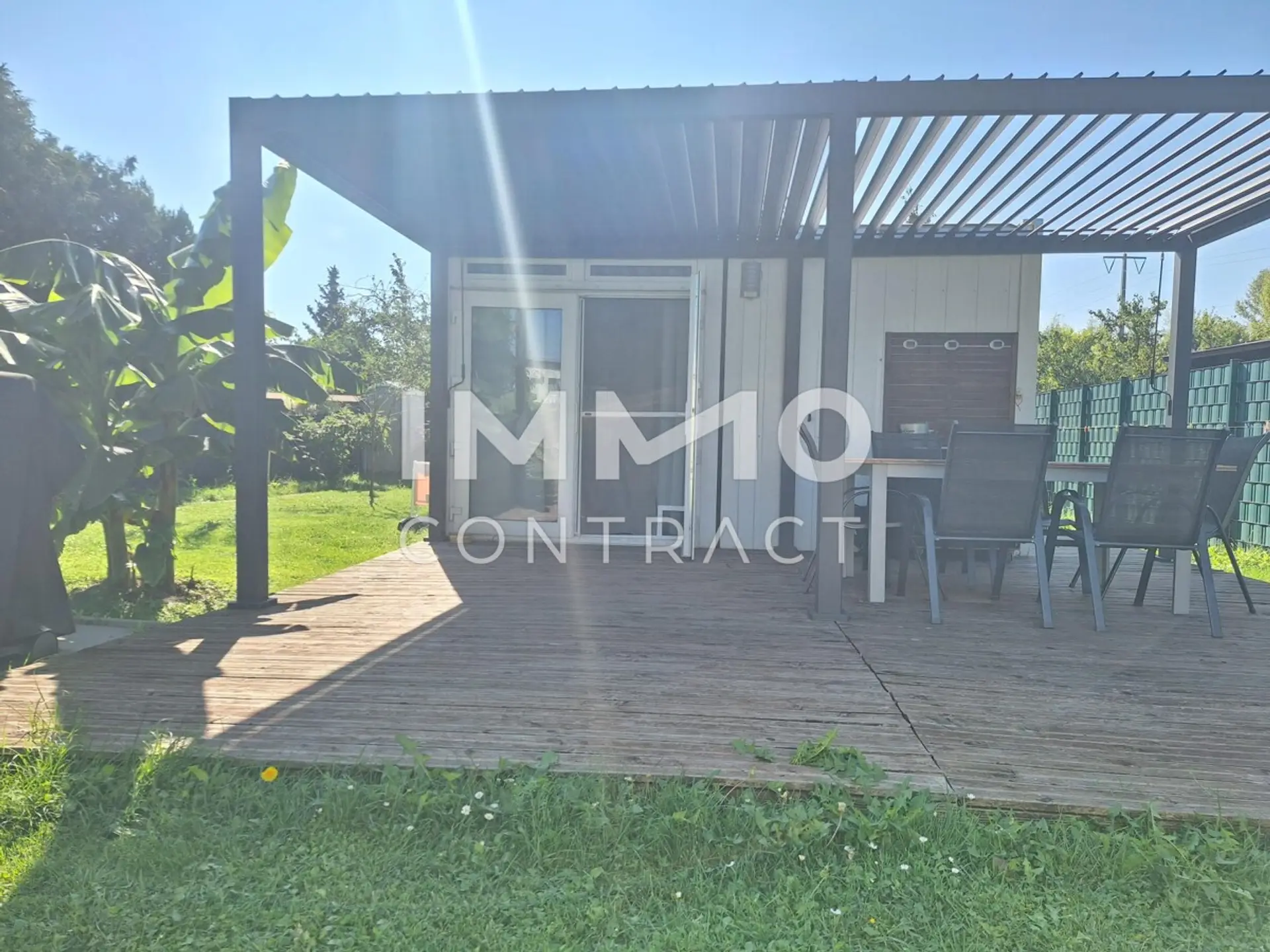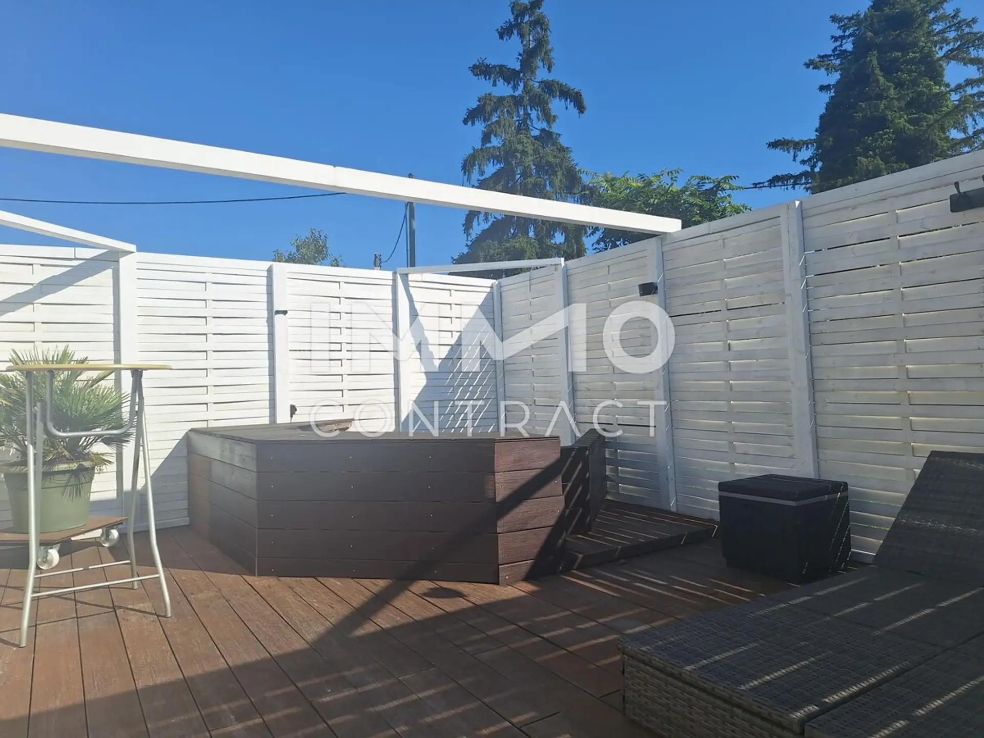 Terrasse mit ca. 30 m² Fläche und moderner Pergola