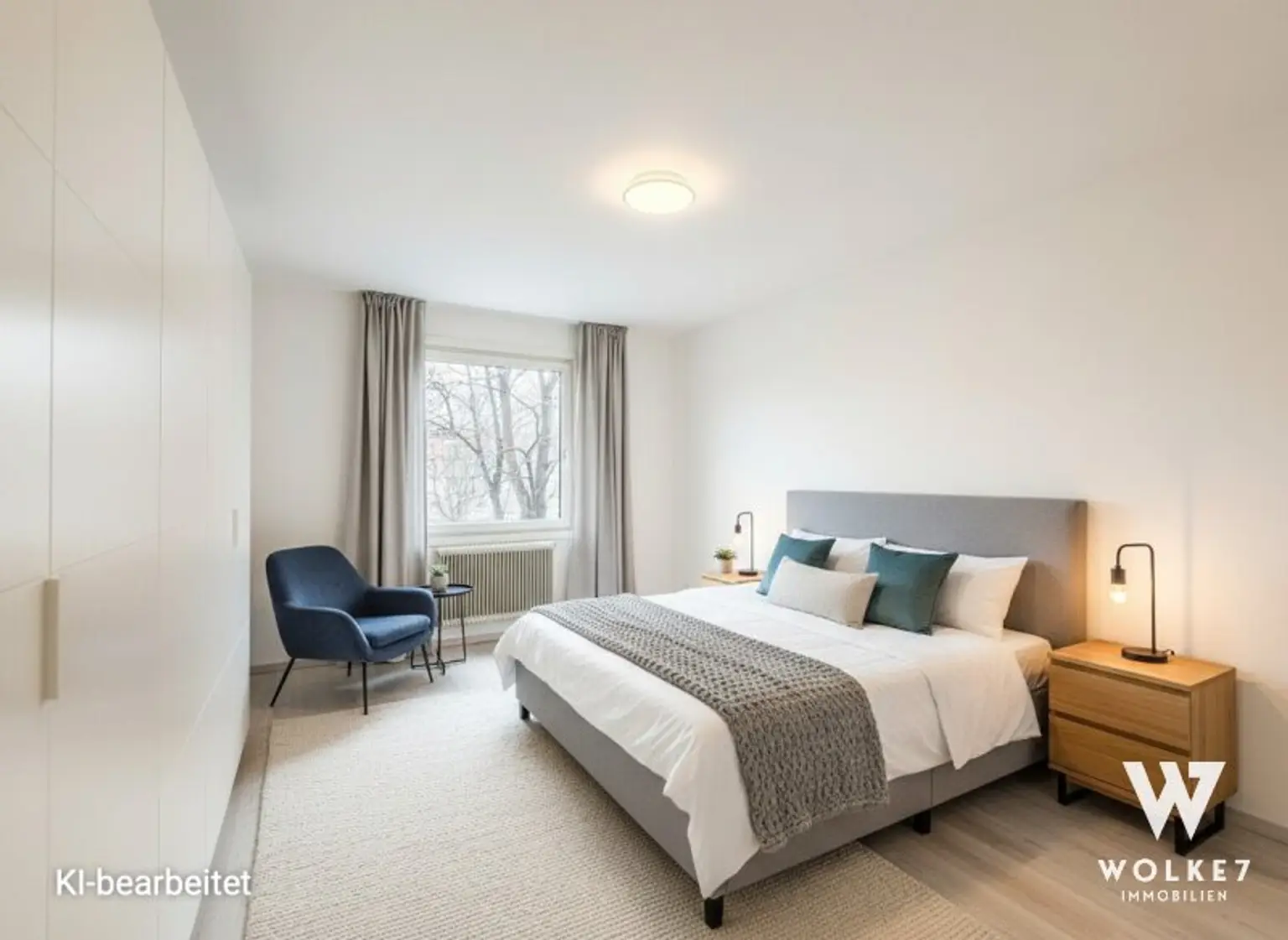 Das ruhige Schlafzimmer sorgt für einen angenehmen Rückzugsort. Ergänzt wird die Wohnung durch ein Badezimmer mit Waschmaschinenanschluss sowie eine separate Wohnküche mit ausreichend Stauraum.