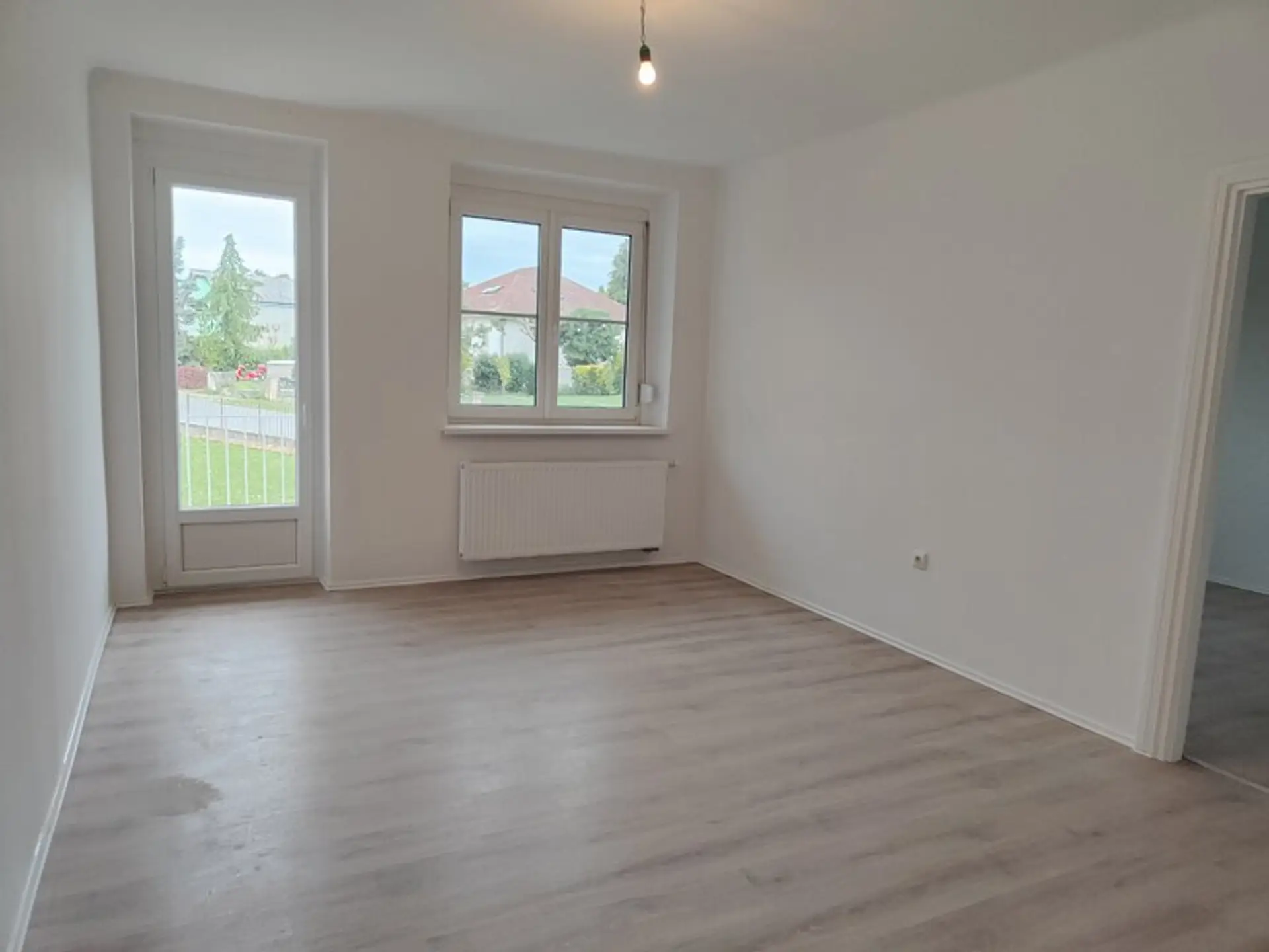 Mit einer großzügigen Fläche von 83,77 m² im EG erstreckt sich diese vollrenovierte Wohnung über drei lichtdurchflutete Zimmer, Küche und Nebenräume. Jedes Zimmer ist geschmackvoll gestaltet und bietet Ihnen die Möglichkeit, Ihre persönlichen Wohnträume zu verwirklichen. Die hochwertigen Dielen, Fliesen und Laminatböden verleihen der Wohnung einen eleganten Touch und schaffen eine einladende Atmosphäre.