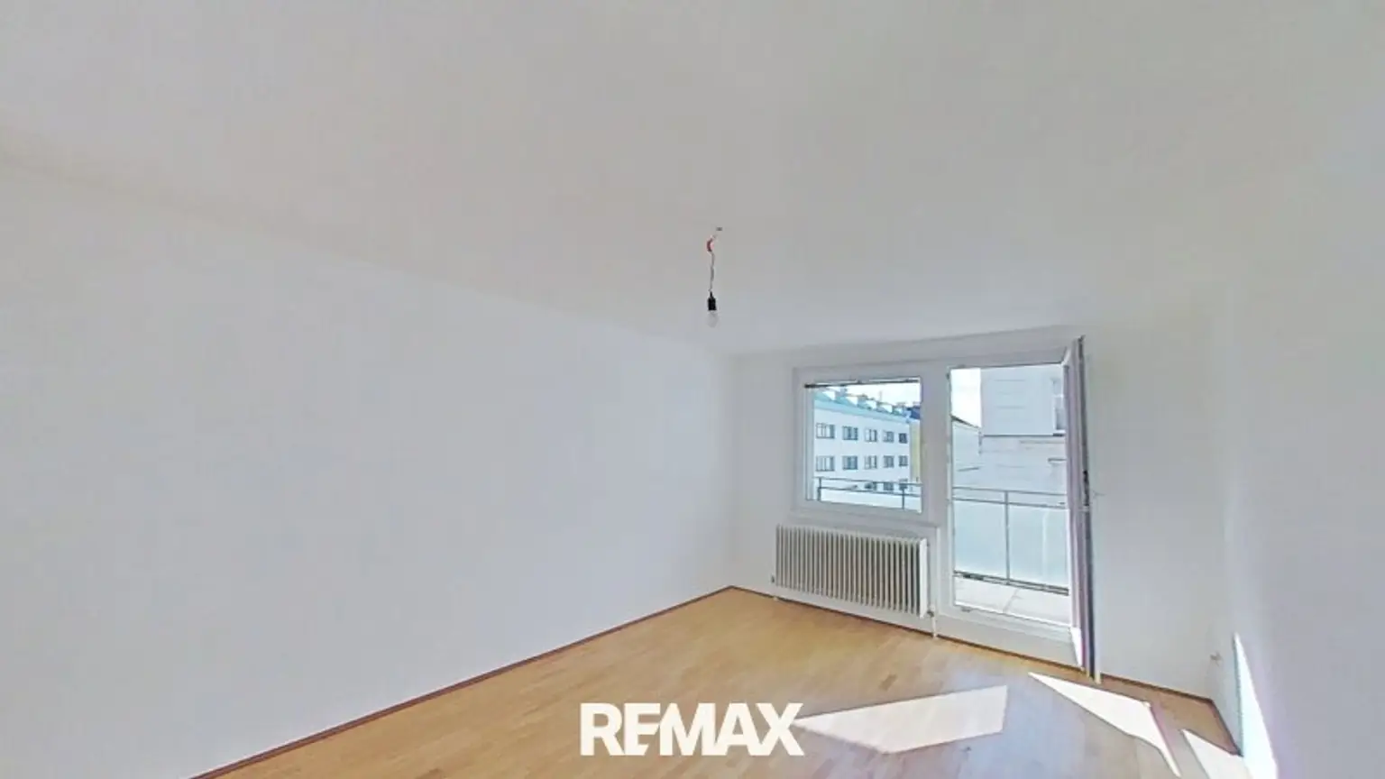 - Wohnzimmer mit Ausgang auf Loggia: ca. 35,32 m² (ursprünglich 2 Zimmer, derzeit zusammengelegt)