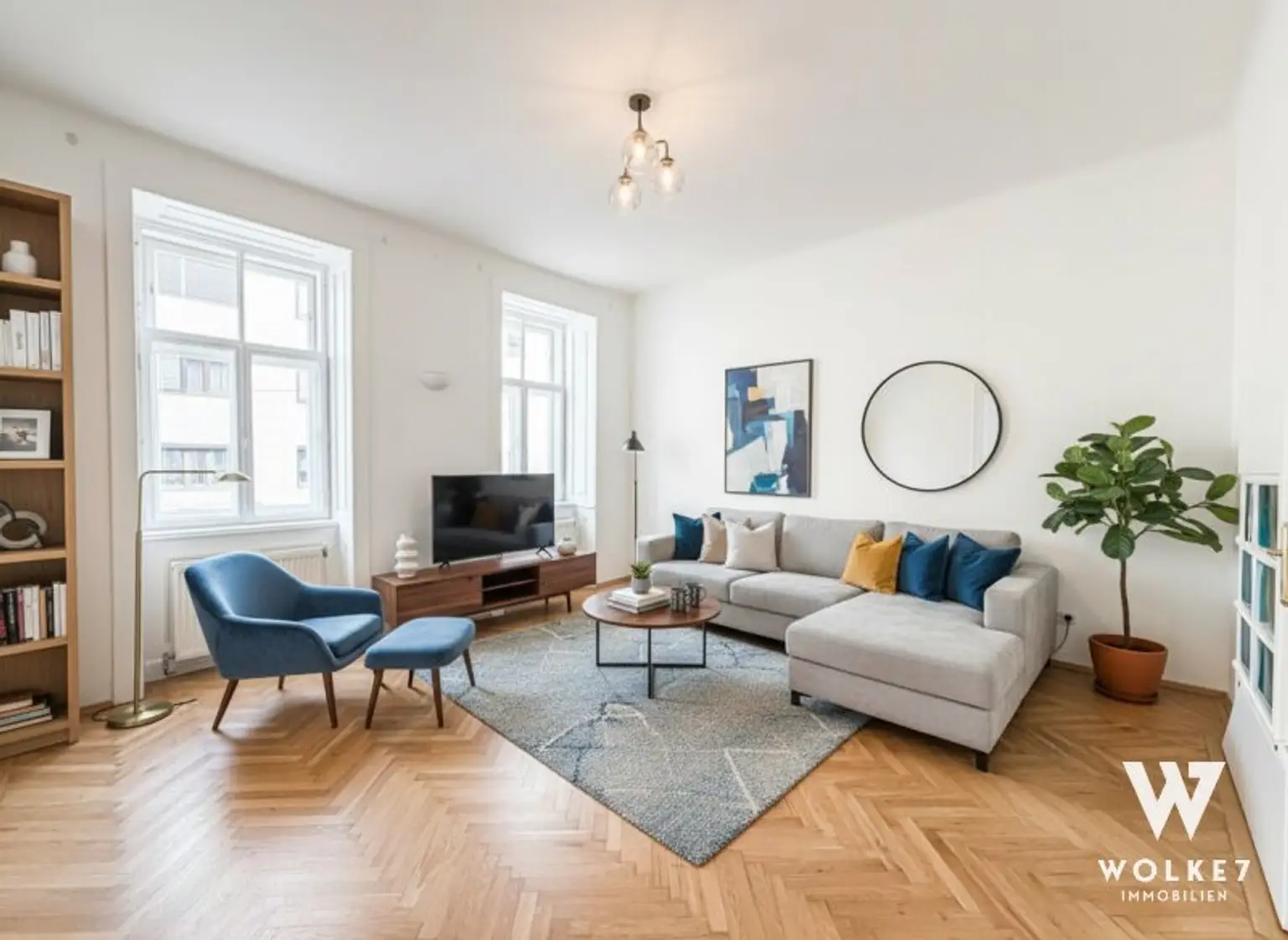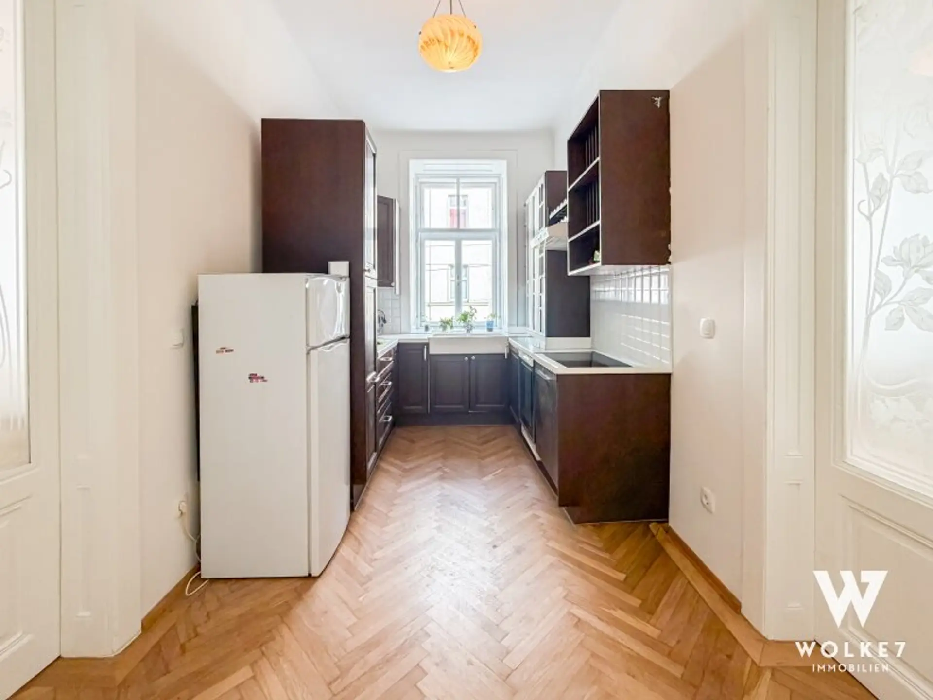 Diese ca. 73,82 m² große Altbauwohnung im 1. OG wurde soeben umfassend saniert und besticht durch den typischen Altbaucharme des Baujahres 1906 mit hohen Räumen und viel Lichteinfall. Im Vorzimmer wurde hochwertiger brasilianischer Parkett verlegt, die Einbauküche rundet das ansprechende Gesamtbild ab.