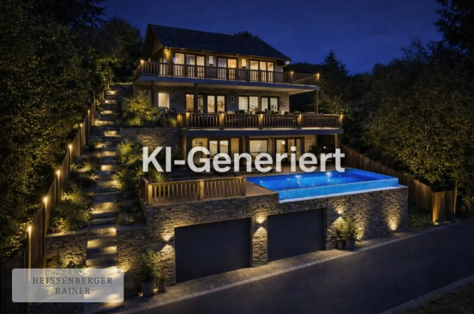 Die dargestellten Visualisierungen, welche mit "KI-Generiert" gekennzeichnet wurden, dienen ausschließlich als unverbindliche Inspiration für eine mögliche Bebauung des Grundstücks und stellen keine verbindliche Planung oder zugesicherte Ausführung dar.