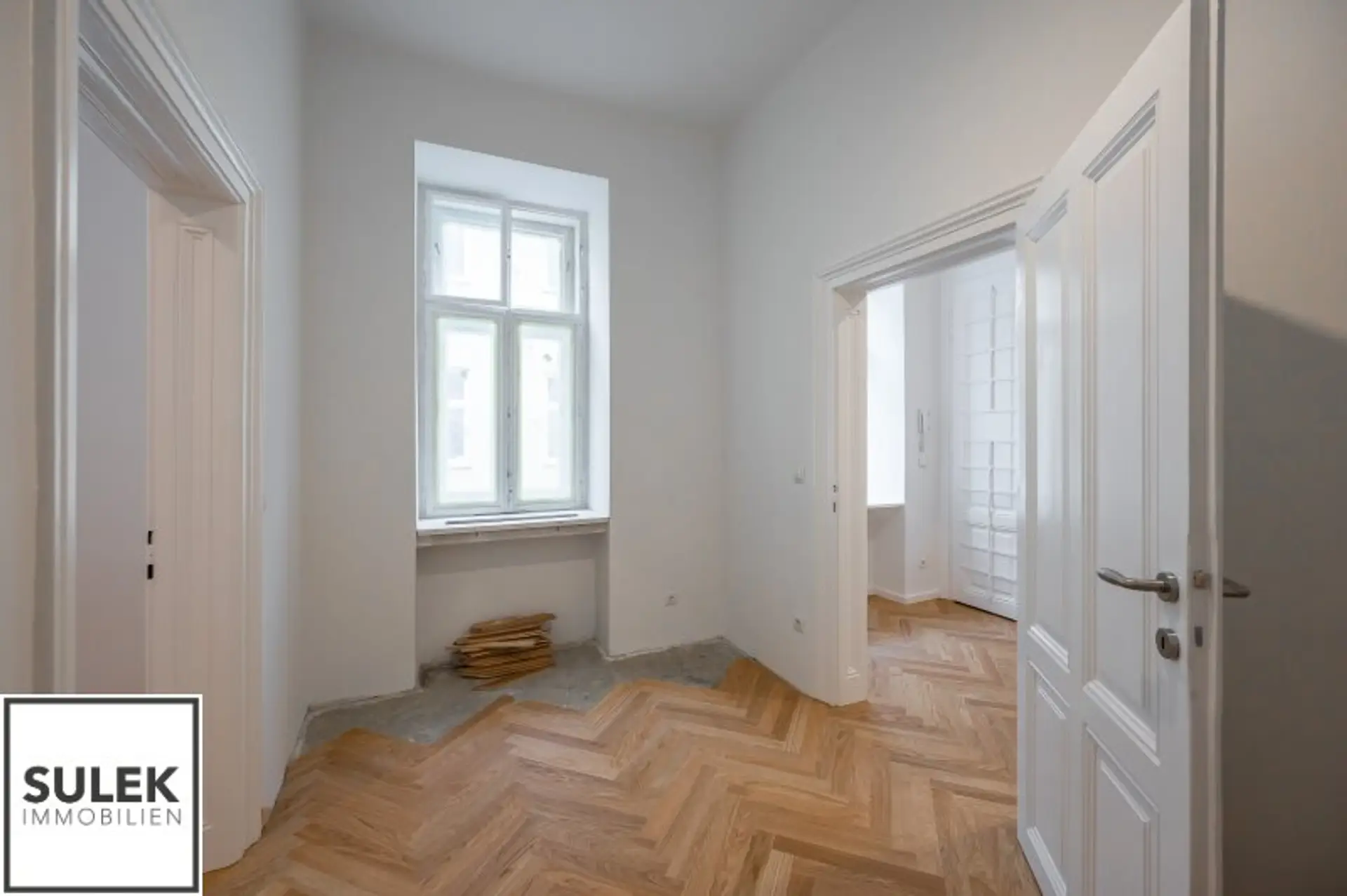 Die durchgestreckte Wohnung wird aktuell saniert und bietet in Kombination des praktischen Grundrisses höchsten Wohnkomfort. Zu den Ausstattungsmerkmalen gehören z.B. Parkettboden (Fischgrät-Muster), Feinsteinzeugfliesen, Doppelflügeltüren etc. Aufgrund der hohen Fenster kann die Wohnung als sehr hell bezeichnet werden. Fahrräder können zudem im ruhigen Innenhof abgestellt werden.