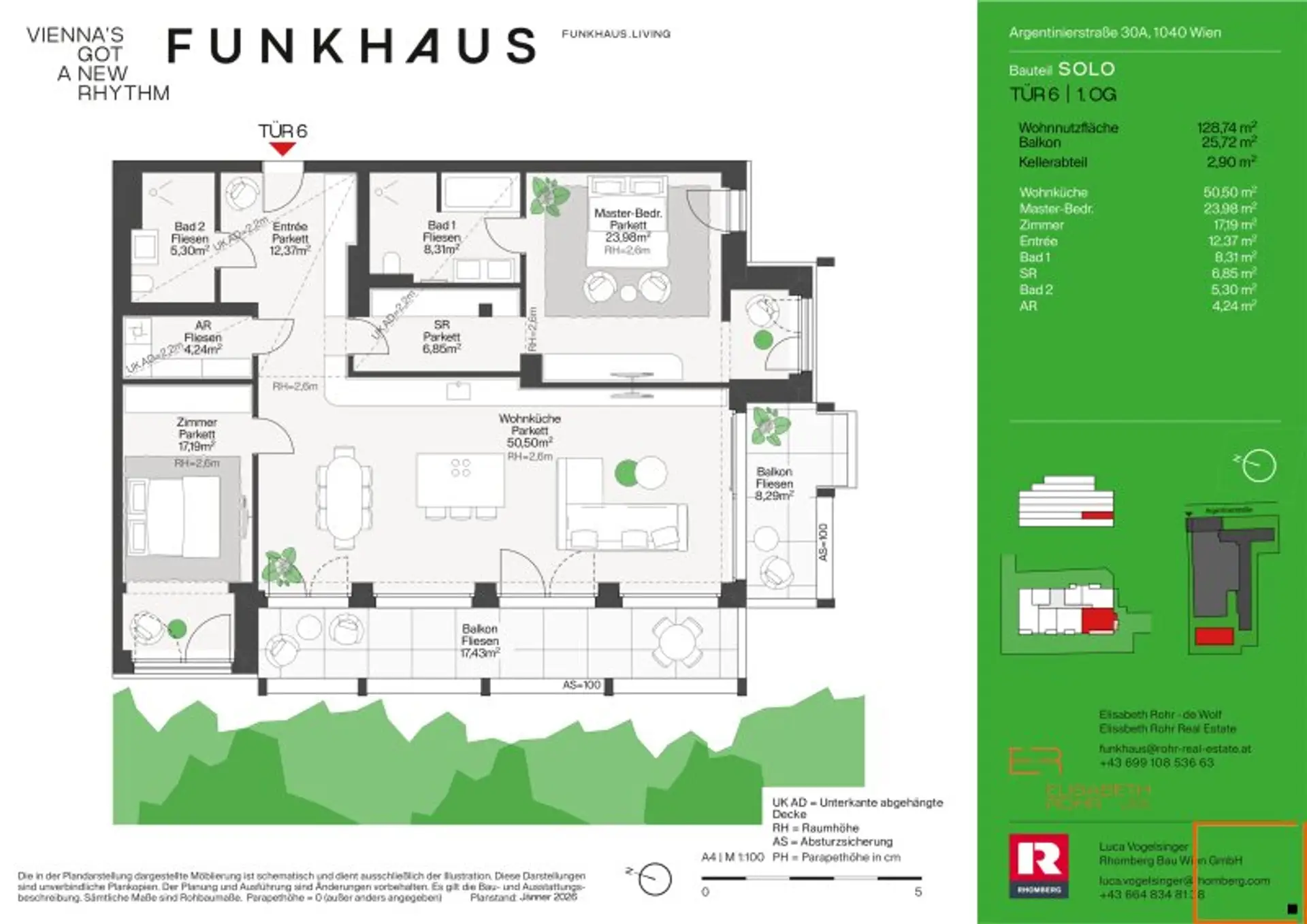 Die top6 liegt im 1. Obergeschoss und verfügt über zwei großzügige Balkone (ca. 25,72m²).