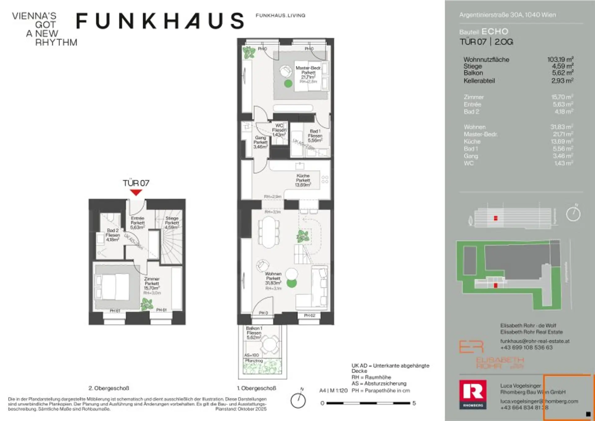 Die top7 ist eine Maisonette mit Zugang im 2. Obergeschoß und Wohnbereich im 1.Obergeschoß.
