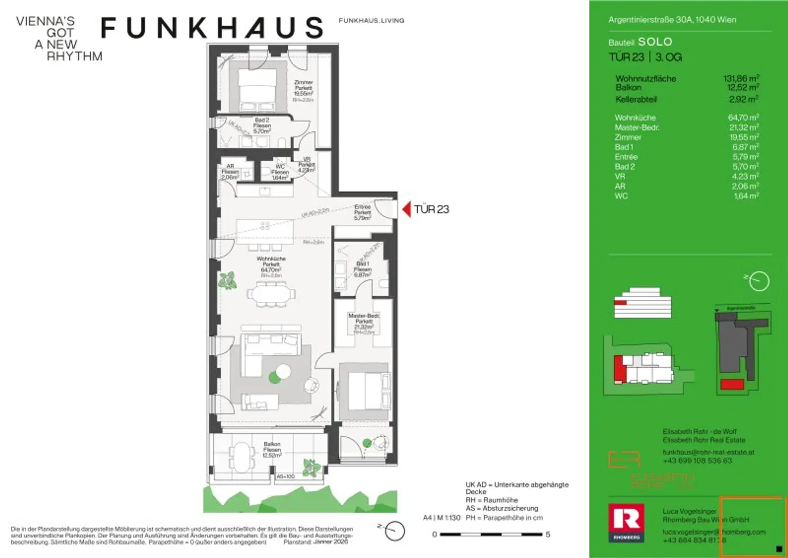 Die top23 liegt im 3.Obergeschoß und verfügt über einen west-seitigen Balkon (ca. 12,52m²).