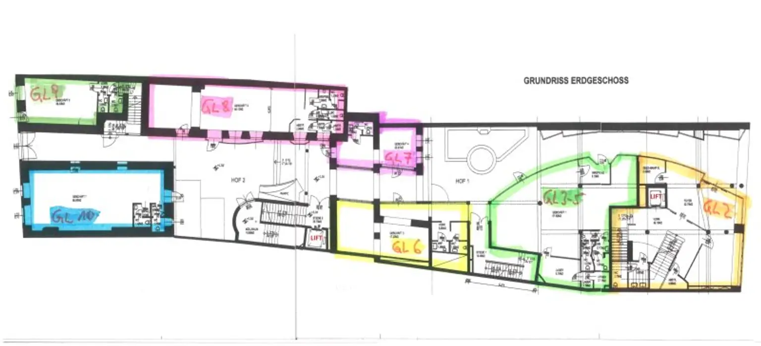 NACHSTEHENDES GESCHÄFTSLOKAL (TOP NR. GL2) HAT EINE FLÄCHE VON 531 M² AUF 2 EBENEN VERBUNDEN INNERHALB MIT EINER BREITEN STIEGE UND EIGENEM LIFT.