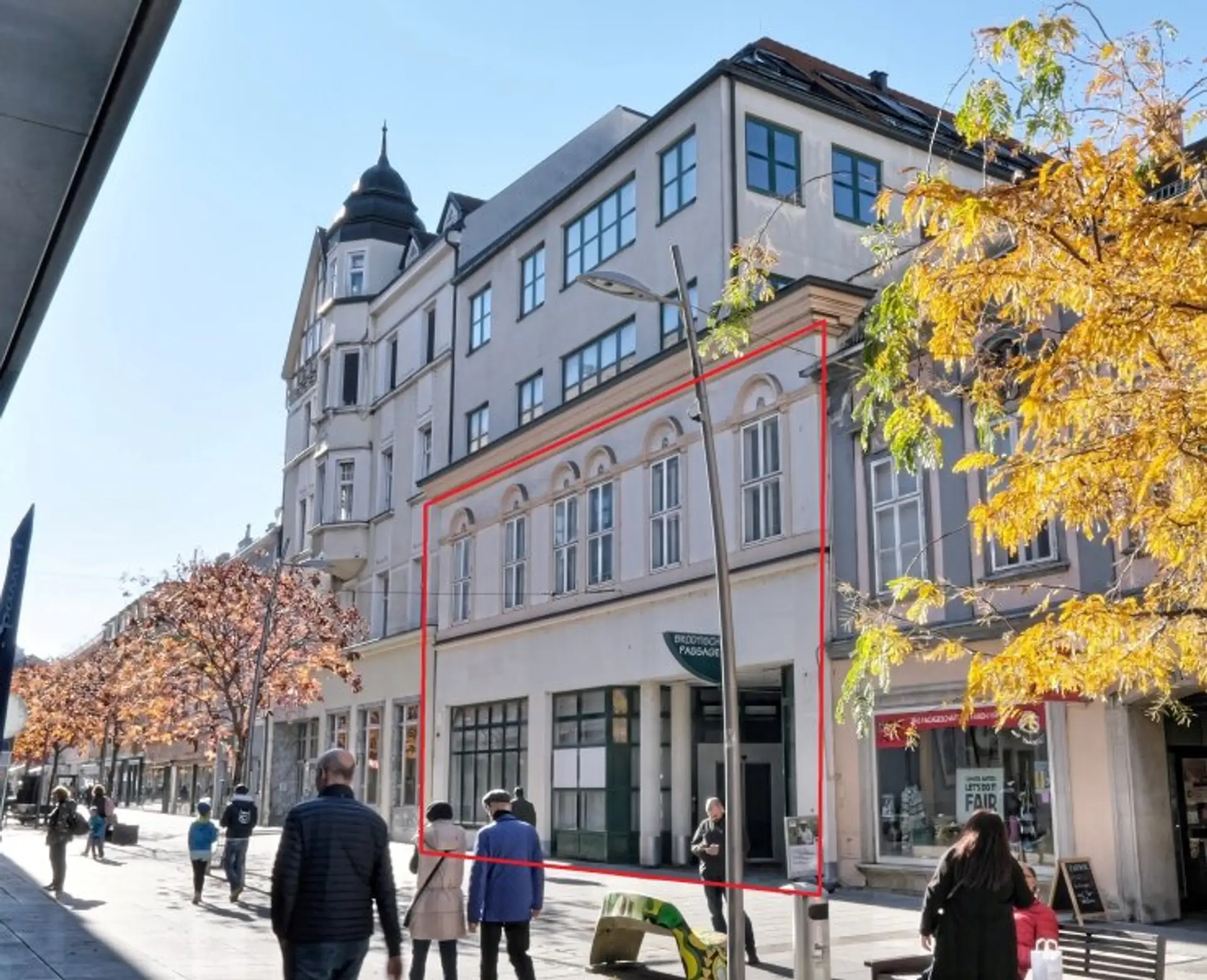 Es wird branchenfrei vermietet, als Firmensitz, Gastrobetrieb, Ordination, Büro, an Institutionelle o. ähnl. Zuletzt wurde es von einer Bank gemietet. Daher ist im Erdgeschoß am Eingang von der Fussgängerzone ein Foyer, welches man heute auch anders nutzen kann. Die Glastrennwand kann auch entfernt werden sodaß der Eingangsraum weitaus größer wird. Im Erdgeschoß befinden sich auch noch eine Toilettenanlage. Sollte die nicht ausreichen, stellt der Vermieter weitere WCs her (Platz ist genug).