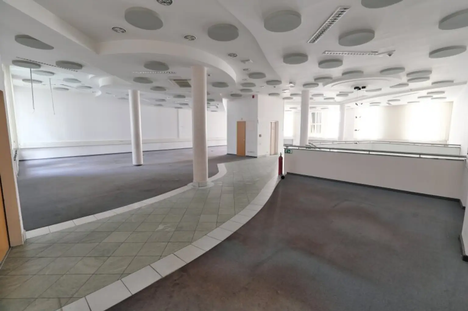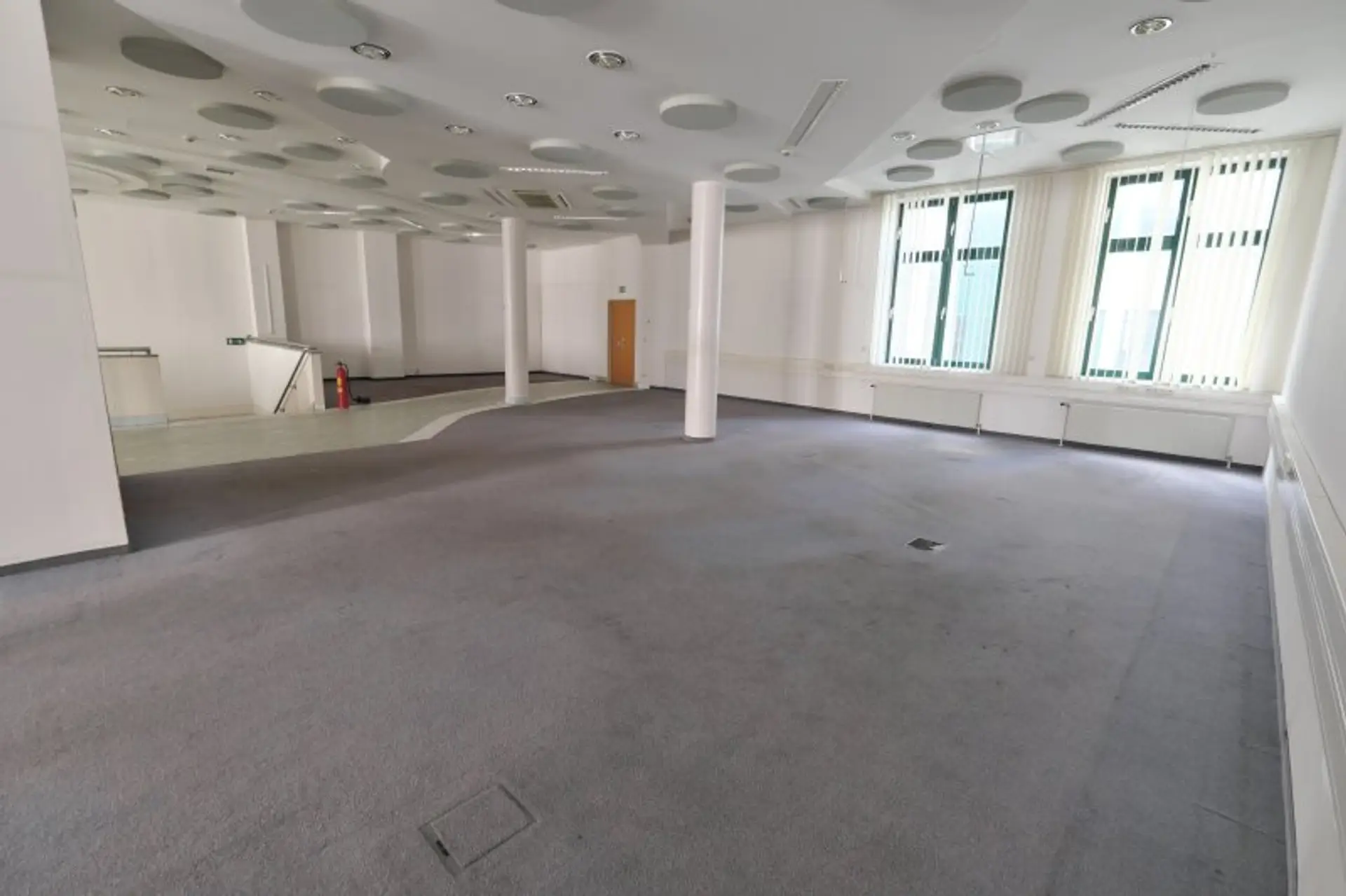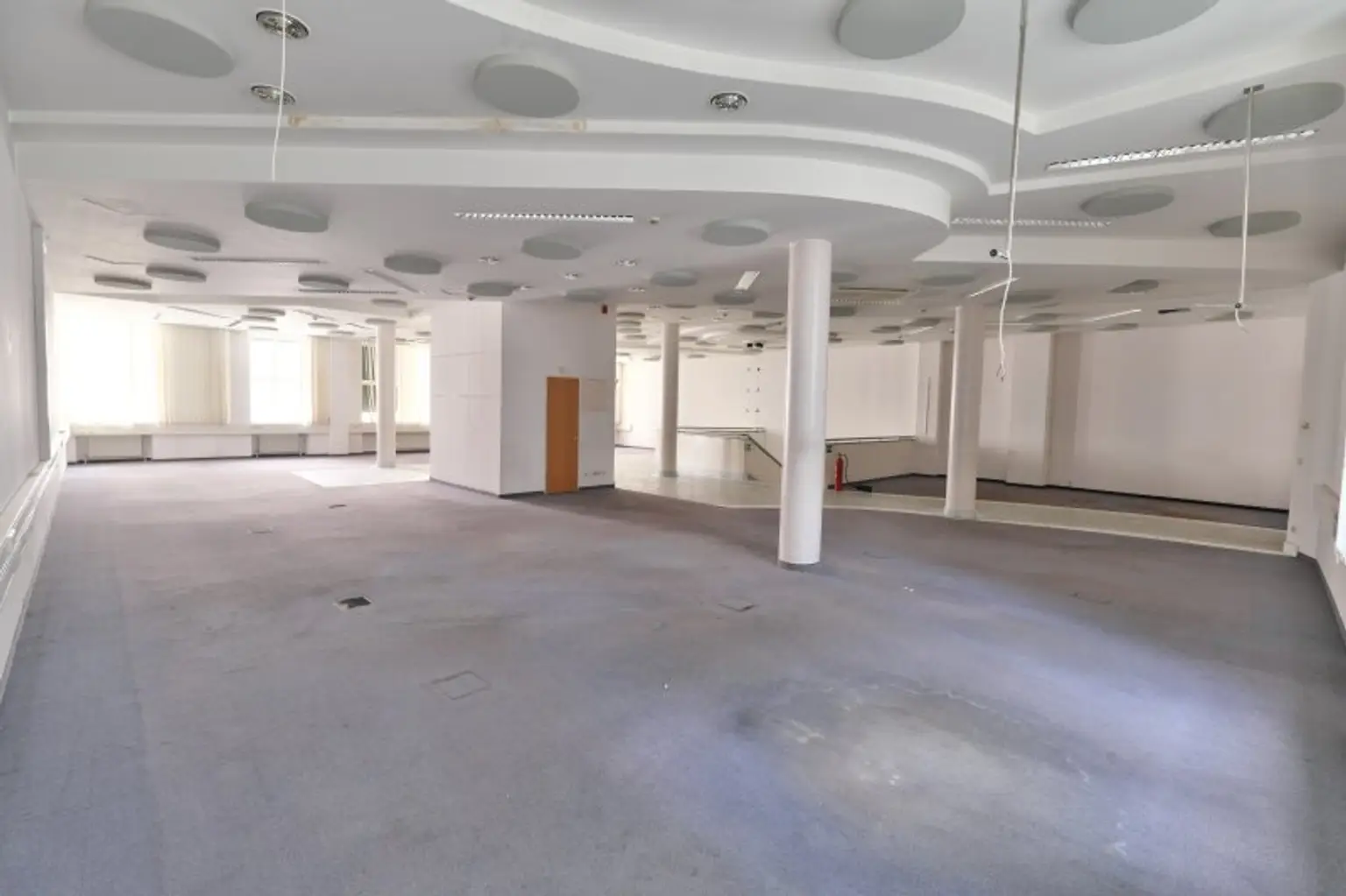 Sodann kommt man wahlweise über die eigene Stiege oder den eigenen Lift in den 1. Stock und befindet sich in einem Saal mit 256 m². An diesen angeschlossen sind weitere 6 Räume. Der Mieter bekommt nahezu jede Zustimmung Umbauten oder andere Veränderungen durchzuführen. Erweiterungsmöglichkeiten, falls man mehr m² braucht, gibt es genug. Gleich angrenzend im EG noch ein ehemaliges Gastrolokal mit 115 m². Auch Lagerräume im Keller gibt es. Sogar ein Tresorraum stünde zur Verfügung.