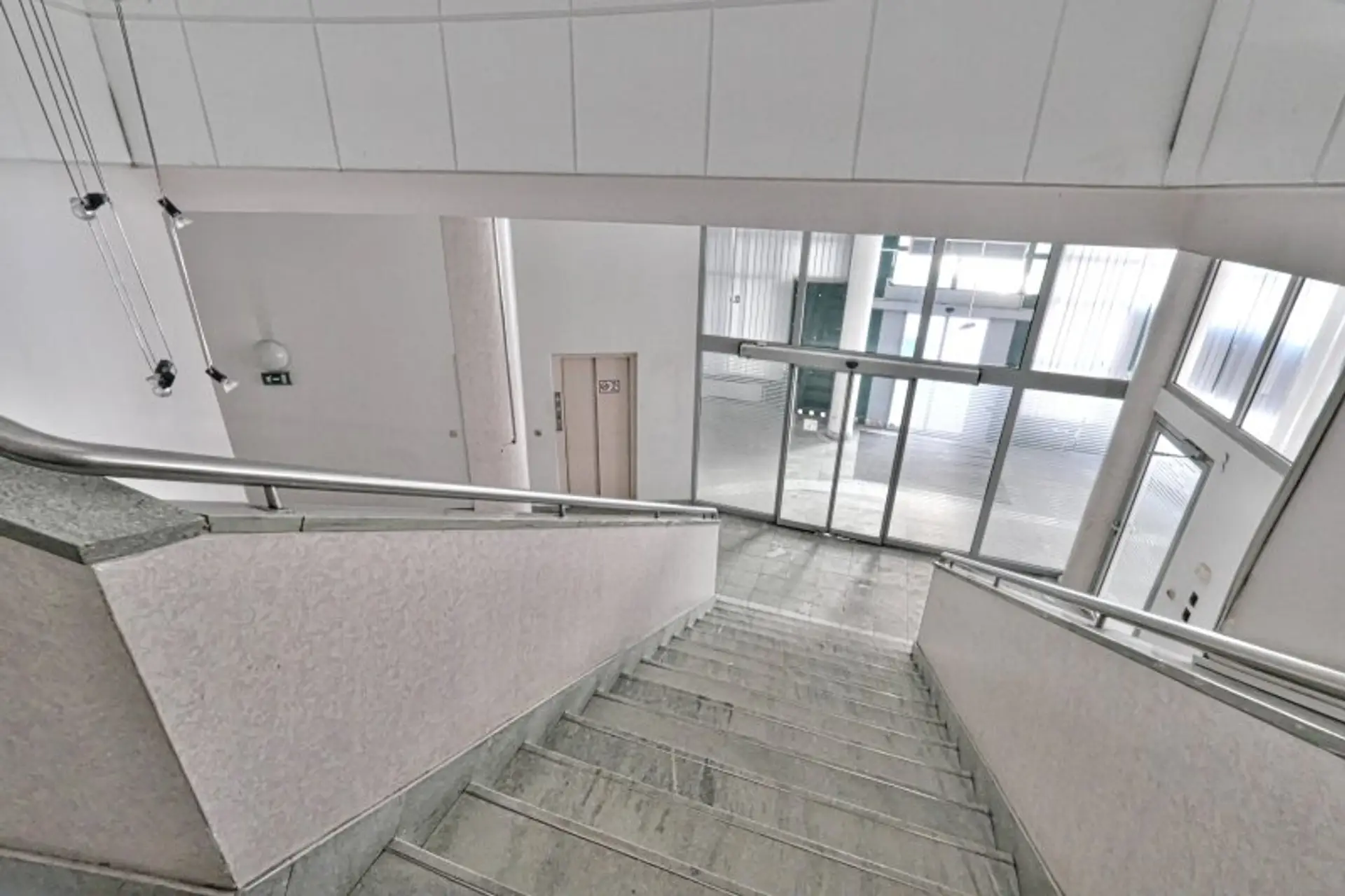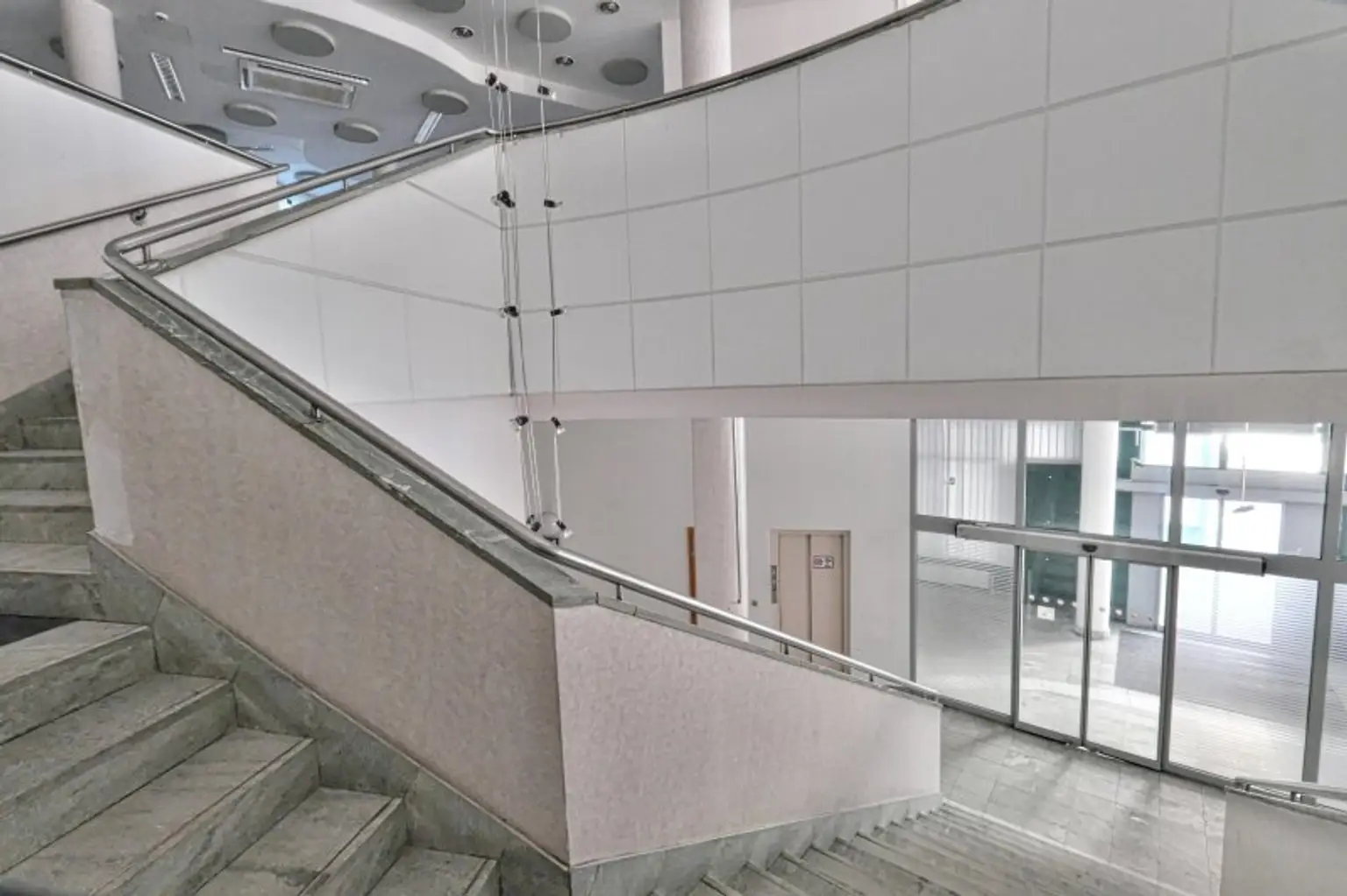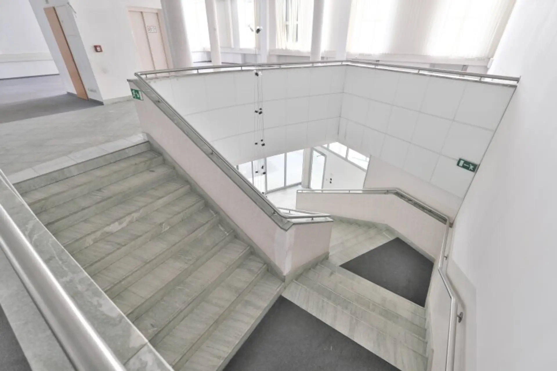 Es gibt noch einen weiteren Lift im Stiegenhaus. Von dort kann man den 1. Stock auch vom Stiegenhaus, von einer anderen Seite begehen.