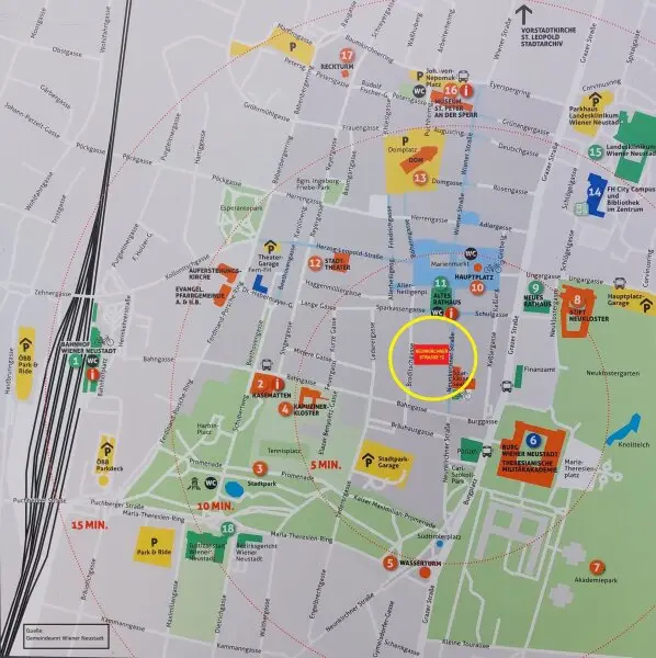 Es befindet sich nur ca. 100 Meter vom Hauptplatz (Zentrum) in direkter Sichtweite.