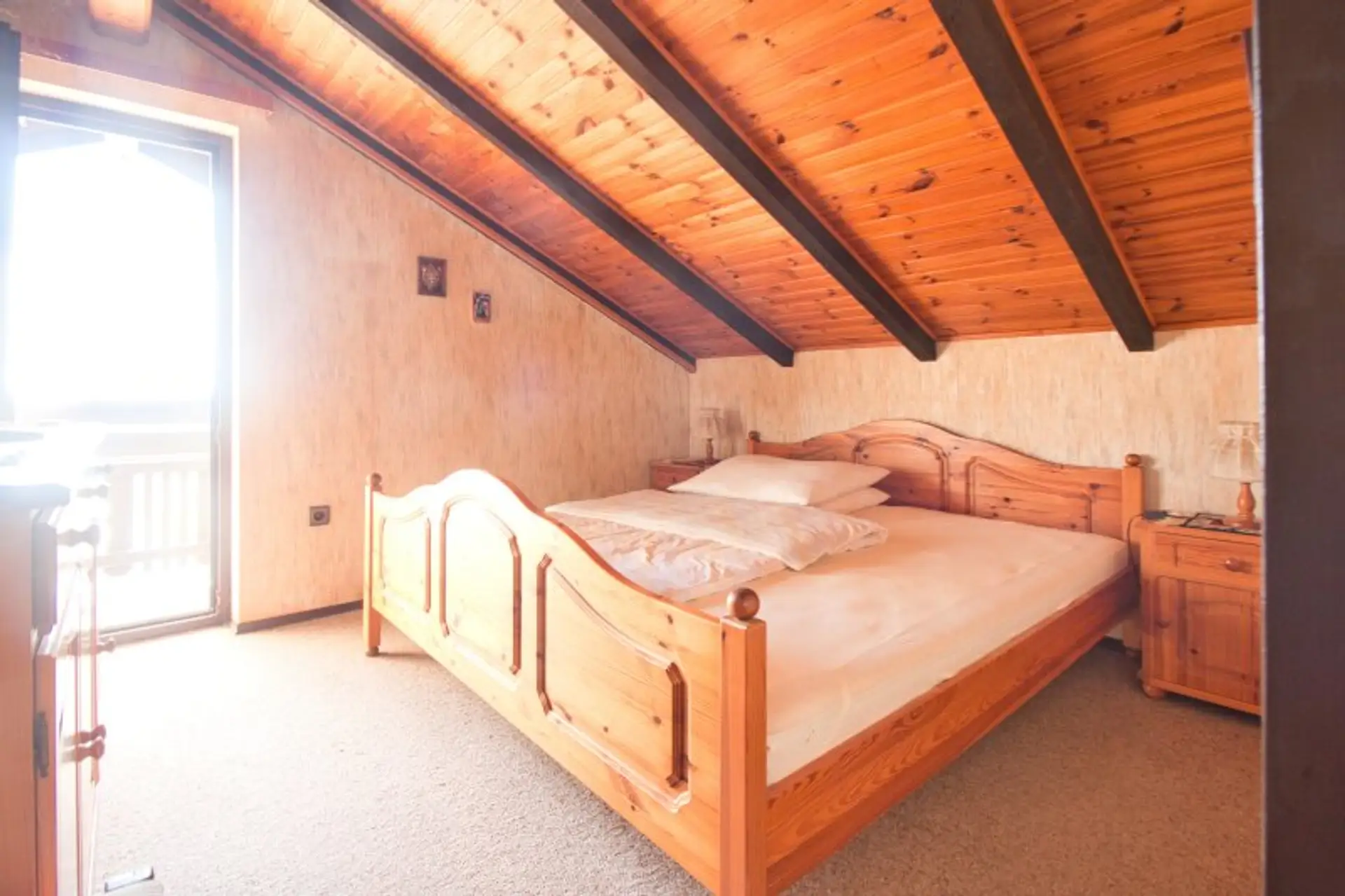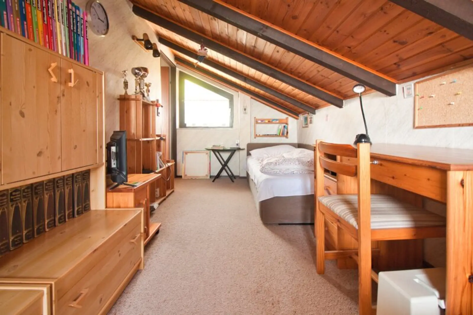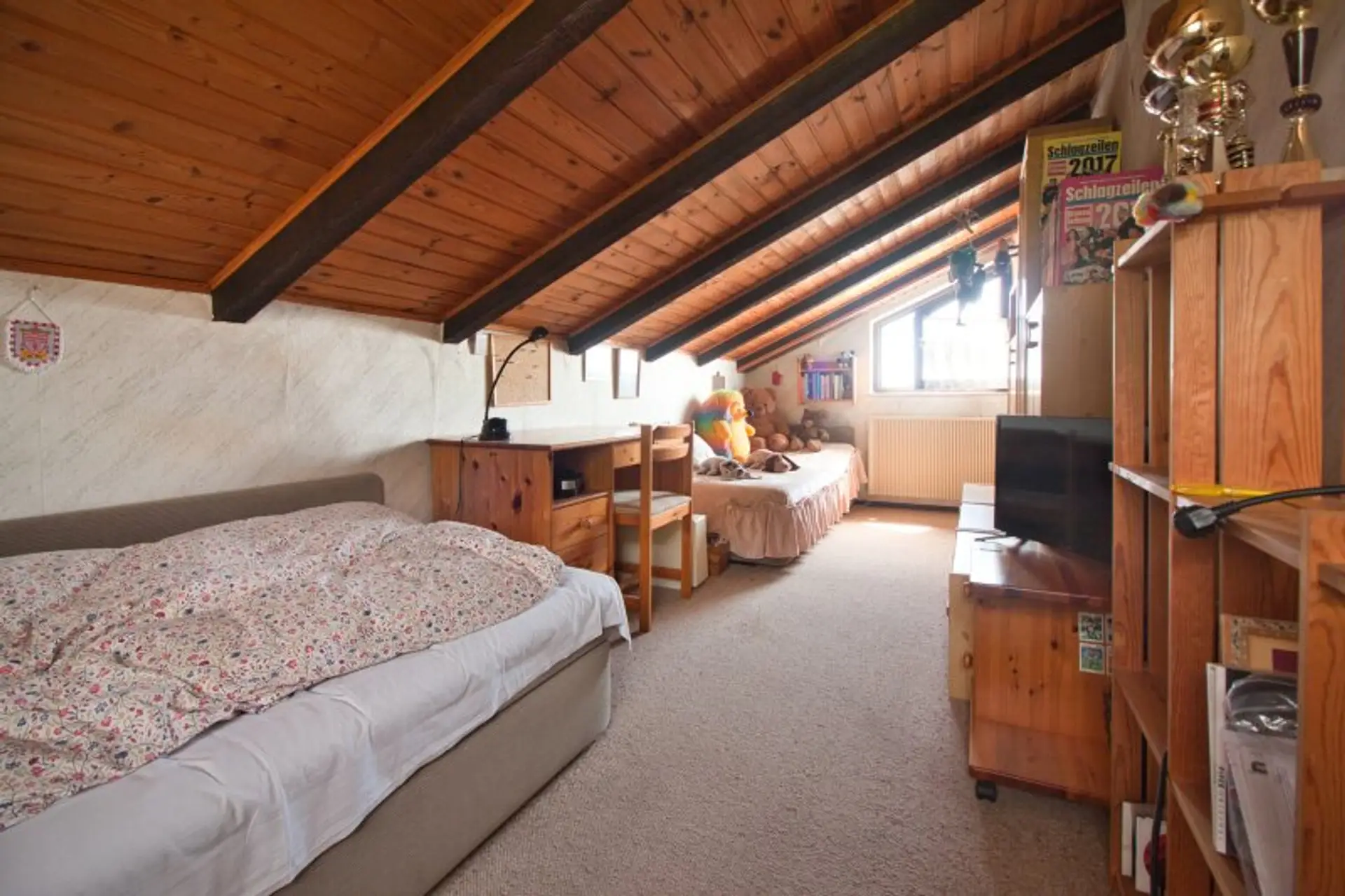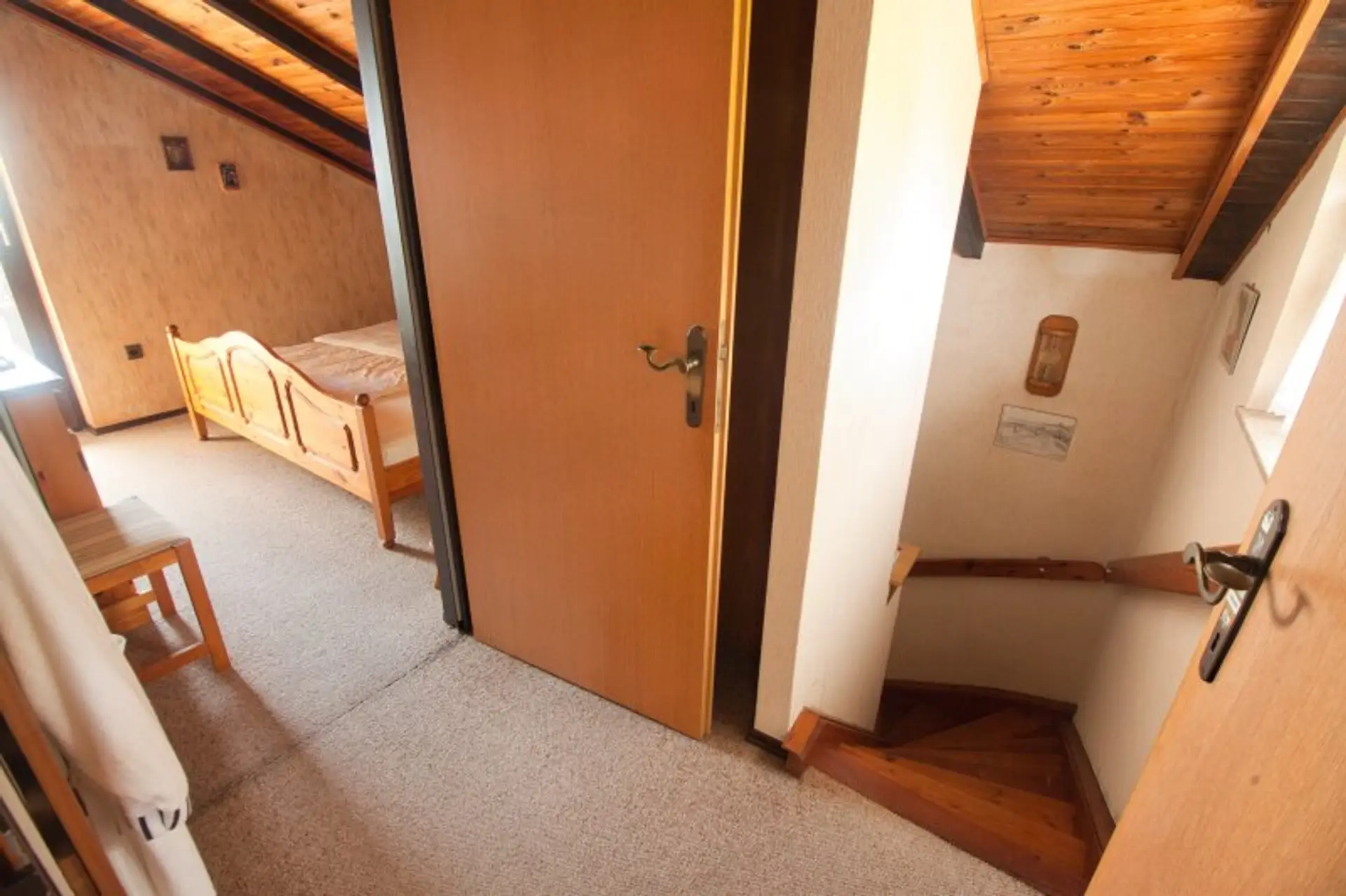 Im Obergeschoss gibt es zwei Zimmer (eines davon mit Balkon und Weitblick über Wien).