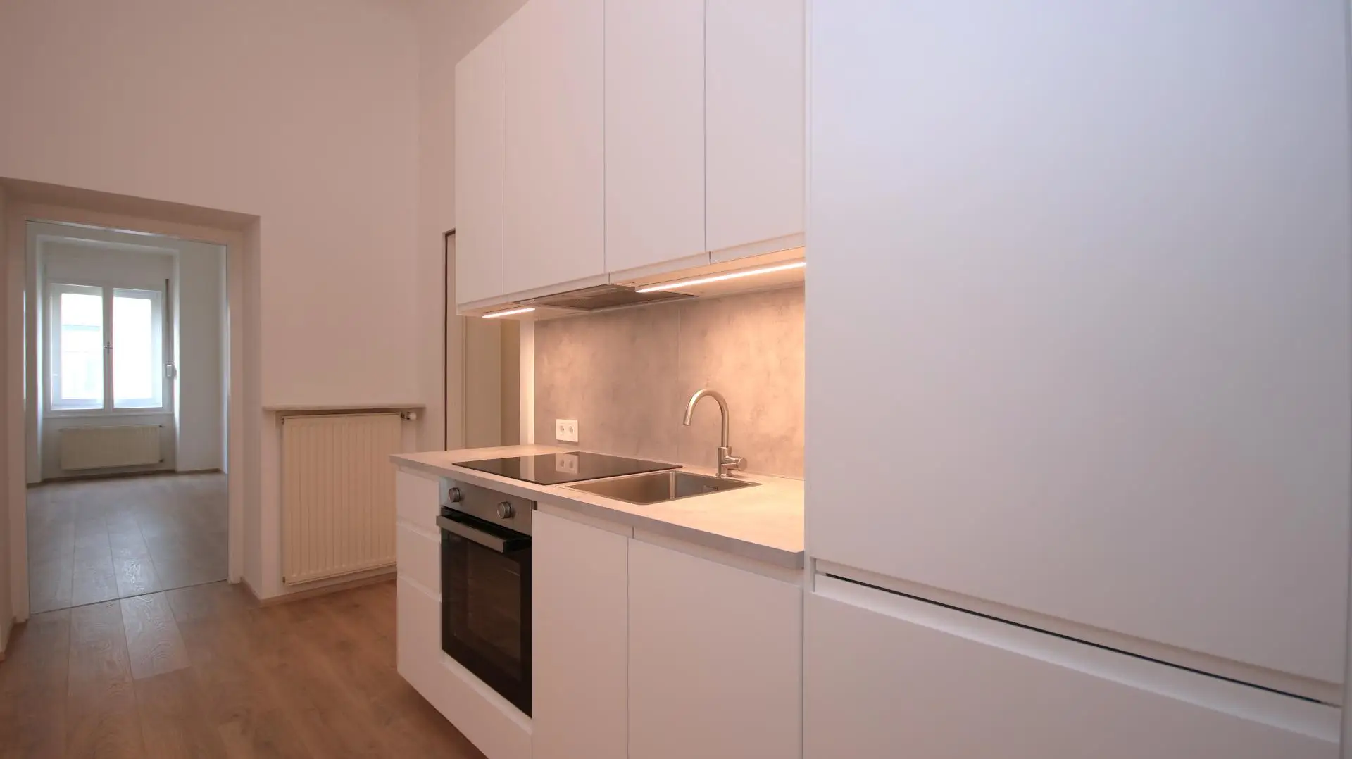 Die Wohnung wurde im Sommer 2025 umfassend und äußerst ansprechend saniert. Sämtliche Leitungen wurden erneuert, ebenso sämtliche Böden. Durch den Altbaucharakter verfügt die Wohnung über eine überdurchschnittliche Raumhöhe, was ein großzügiges Wohngefühl vermittelt. Die Küche wurde mit klaren Linien und funktionalen Details gestaltet und bietet alles, was man im Alltag braucht, ohne zu überladen zu wirken.