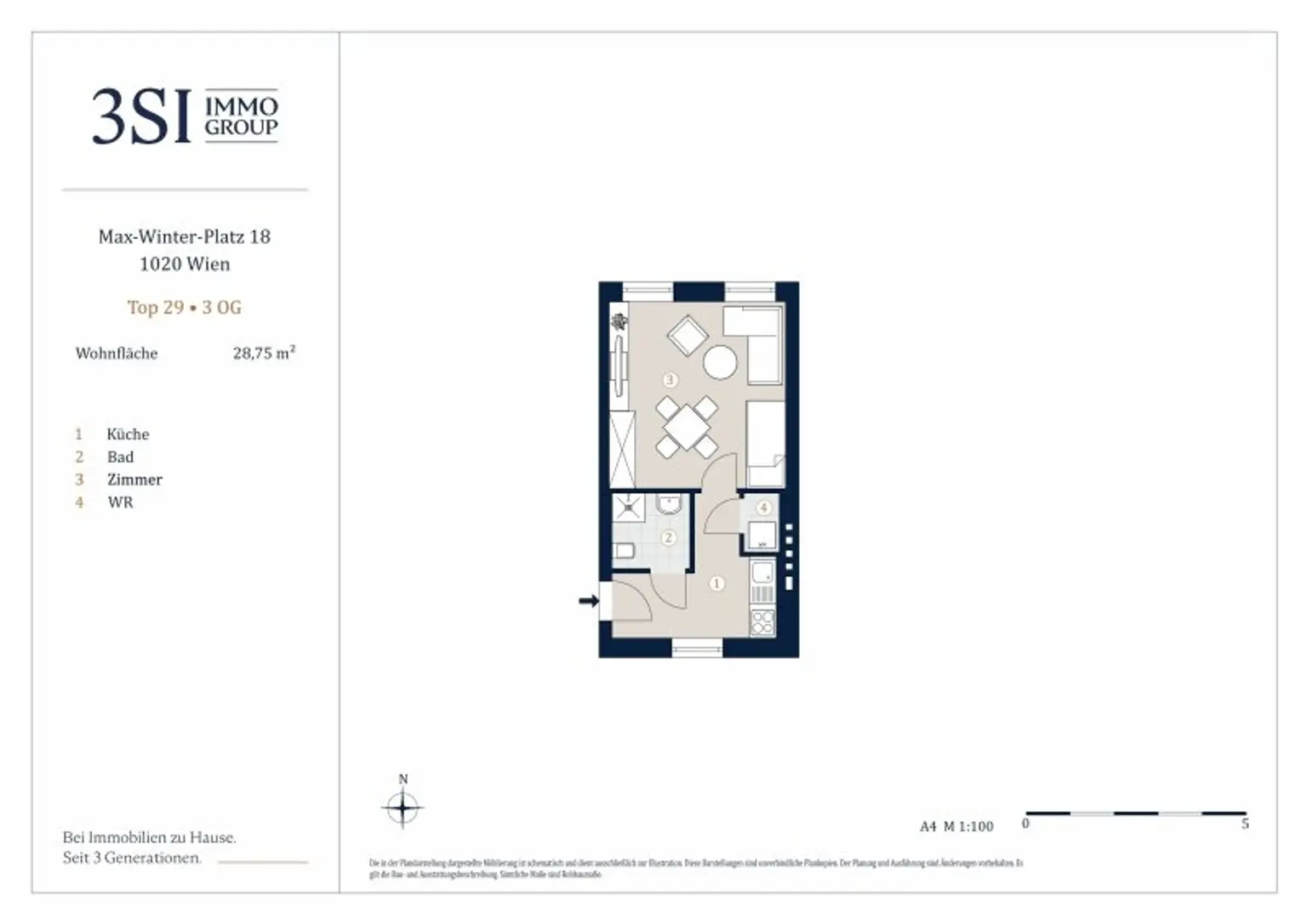 Die Wohnung befindet sich im 3. Liftstock und teilt sich in einen Vorraum, eine Wohn-/Schlafbereich und ein Badezimmer auf. Die Wohnräume sind mit einem schönen Parkettboden ausgestattet und die Nassräume sind verfliest. Die Regelung und Steuerung der Heizung erfolgt über ein Einzelraumthermostate