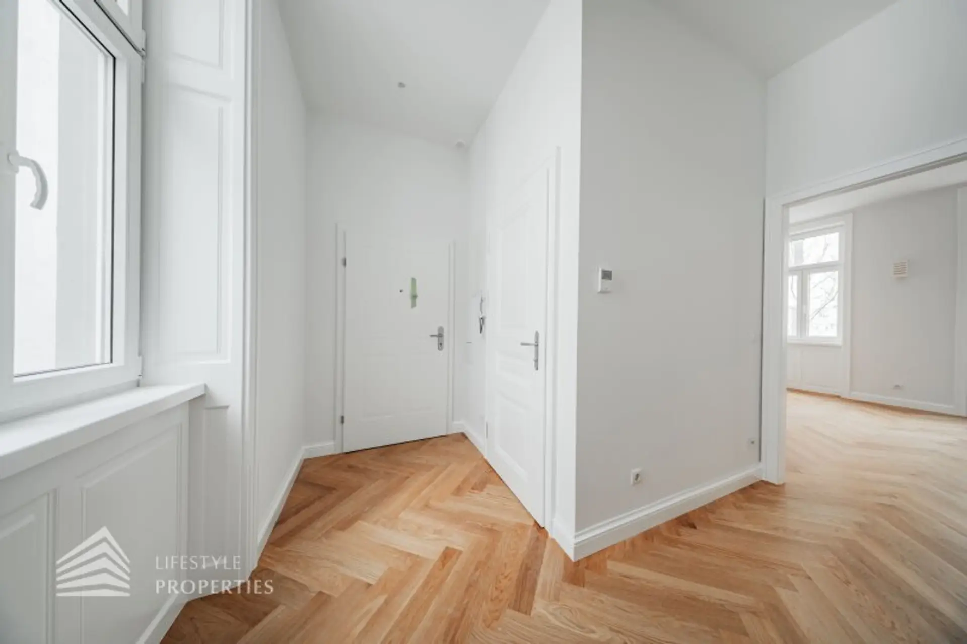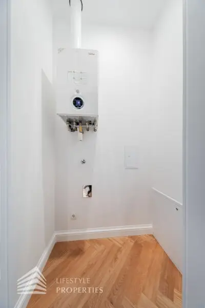 Eleganter Deckenstuck und feine Vertäfelungen unterstreichen den einzigartigen Alt-Wien-Charakter. Traditionelle Holzkastenfenster, die durch moderne Isolierverglasung aufgewertet wurden zieren straßenseitig die Fassade. Die Wärmeversorgung und Warmwasserbereitung erfolgt über Gasetagenheizung. Die Wärmeverteilung in der Wohnung erfolgt mittels Fußbodenheizung.