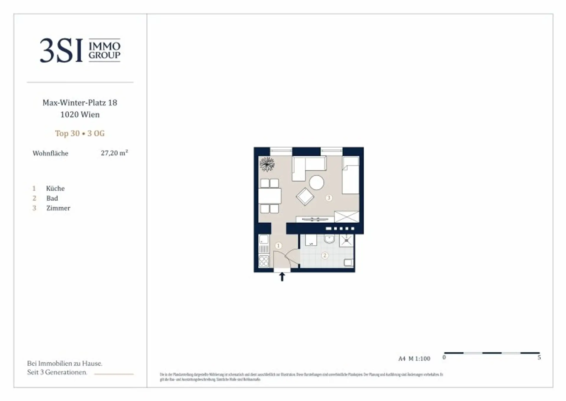 Die Wohnung befindet sich im 3. Liftstock und teilt sich in einen Vorraum, eine Wohn-/Schlafbereich und ein Badezimmer auf. Die Wohnräume sind mit einem schönen Parkettboden ausgestattet und die Nassräume sind verfliest. Die Regelung und Steuerung der Heizung erfolgt über ein Einzelraumthermostate