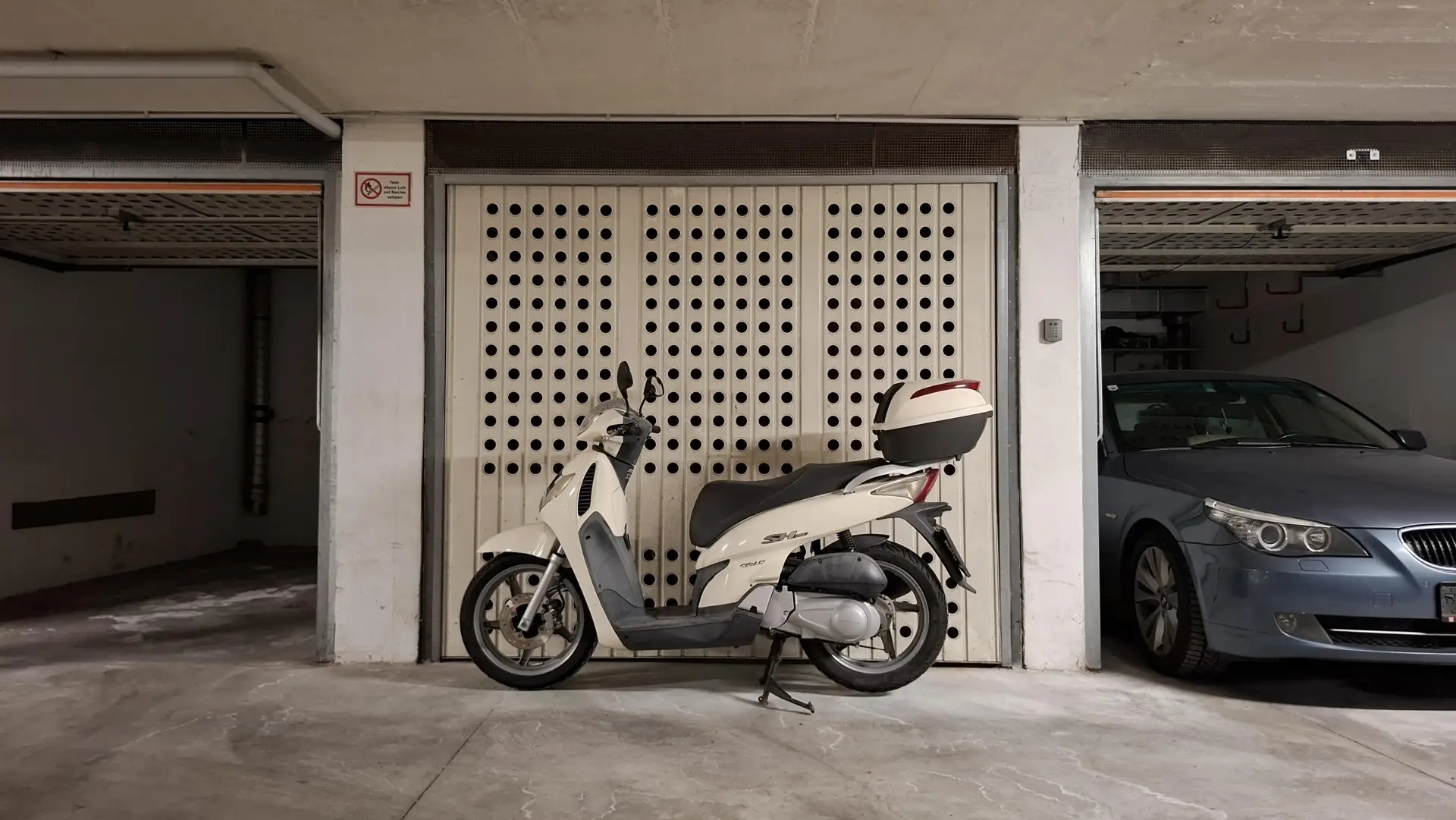 Zusätzlichen Stauraum bietet ein eigenes Kellerabteil, das über Licht- und Stromanschluss verfügt. Zur Wohnung gehört außerdem ein Tiefgaragenabstellplatz in Form einer eigenen Box. Hinter dem Gebäude stehen darüber hinaus allgemeine Parkplätze für Bewohner und Besucher zur Verfügung.