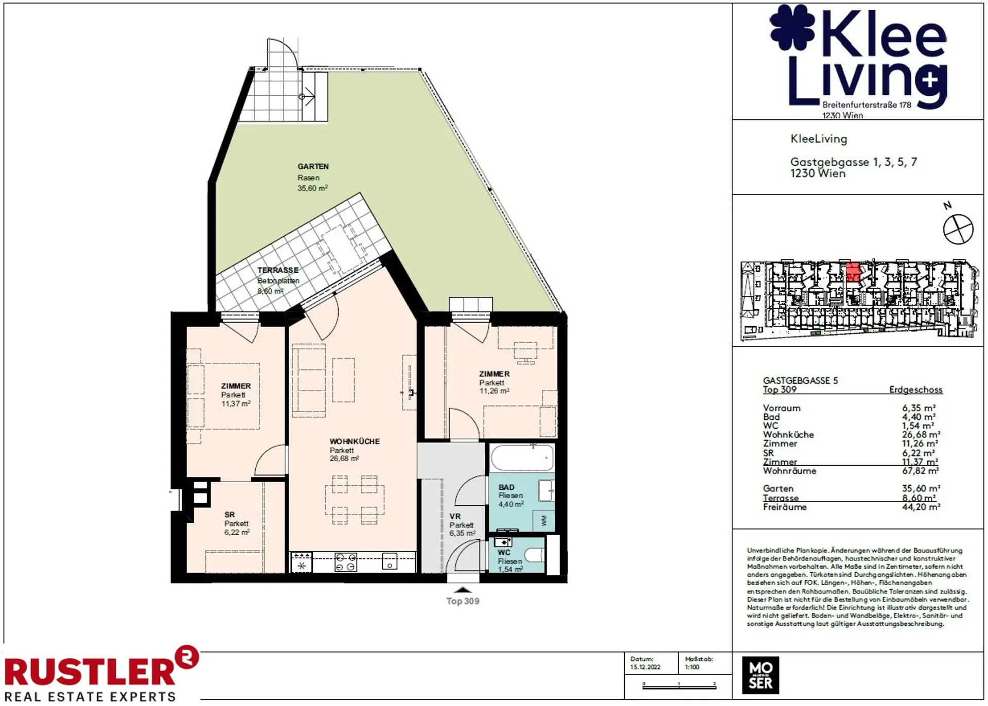 In dem nahe der Breitenfurter Straße gelegenen Neubau gelangt diese charmante 3-Zimmer-Wohnung zur Vermietung. Die Wohnung verfügt über 67m² zuzüglich einer Terrasse mit 8,60m² und einem Garten mit 35,60m² und kann besonders durch die moderne Ausstattung überzeugen. Ausstattung: Boden: Parkettboden, Fließen im Badezimmer Küche: Vollausgestattet mit Herdplatte, Backrohr, Geschirrspüler, Kühlschrank, Gefrierfach Badezimmer: Badewanne, Waschmaschinenanschluss, Waschbecken Allgemeine Informationen: • Erdgeschoss mit Lift • Außenjalousien • Kein Kellerabteil Heizungsart: Zentralheizung (Deckenheizung / Kühlung) Energieausweis: HWB: 20,1 kWh/m²a Eckdaten und Kostenaufstellung: Befristung: 5 Jahre Mietbeginn: sofort Kaution: 3 Bruttomonatsmieten Admin. Aufwand HV: 300,00€