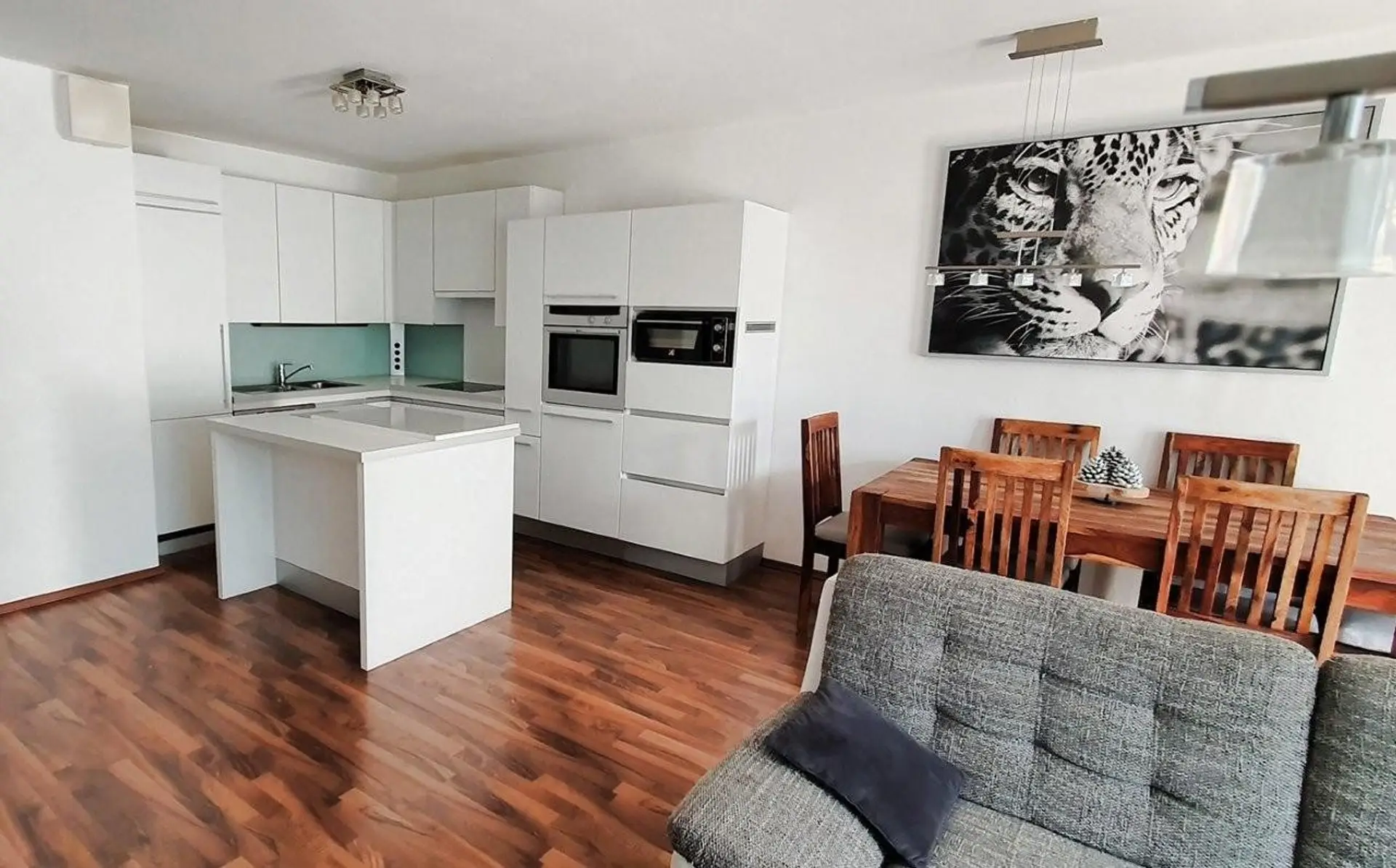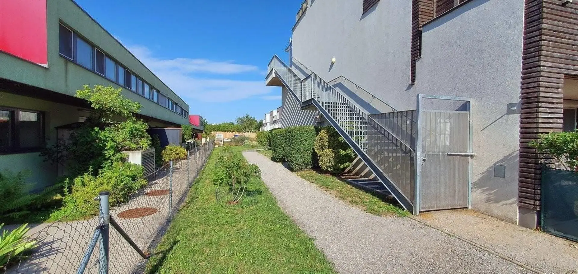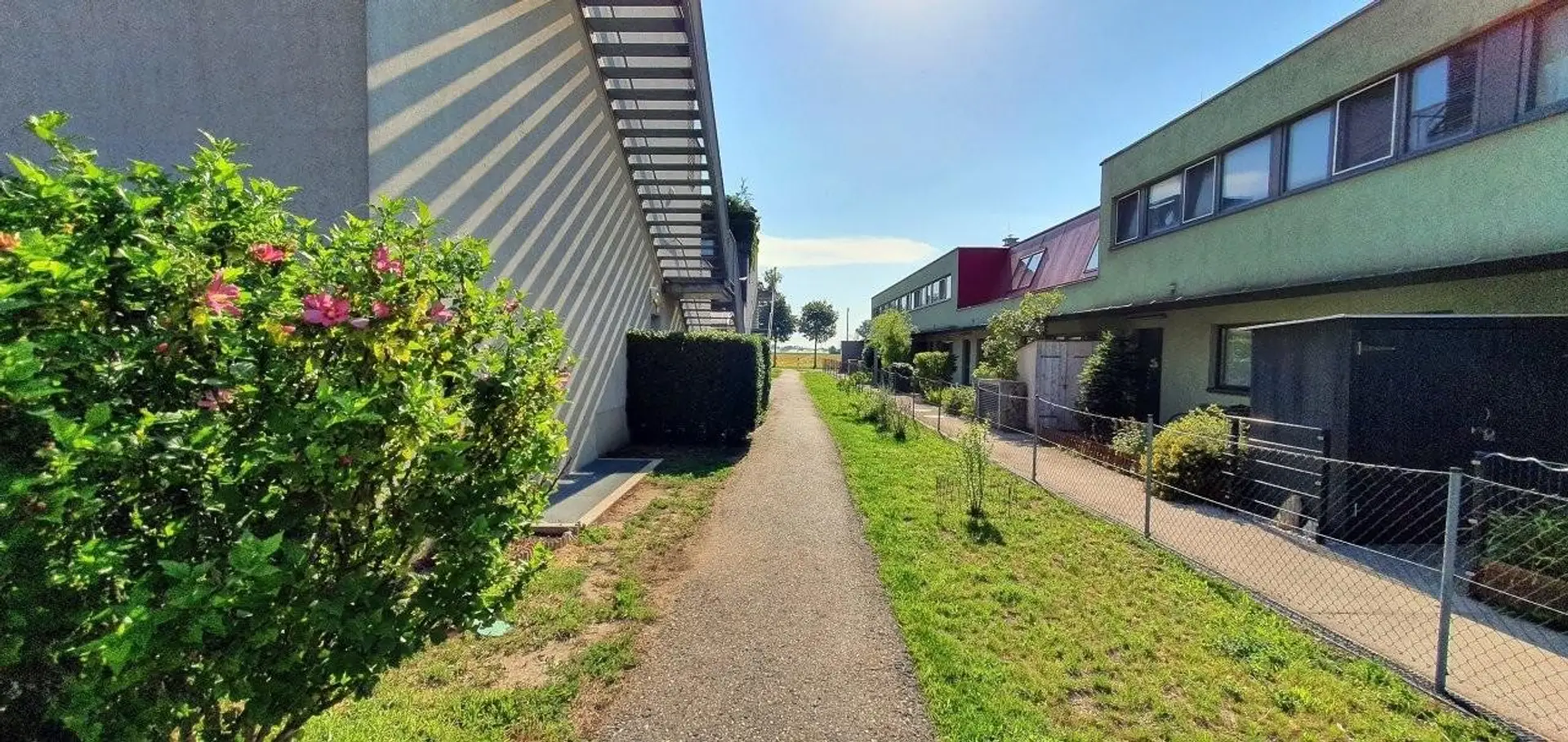 Das helle und freundliche Wohnzimmer mit ausreichend Platz für eine gmütliche Essgarnitur und Loungebereich, führt zur überdachten Terrasse/Loggia mit anschließendem Garten ostseitig. Vom Schlafzimmer aus hat man einen direkten Zugang zum größeren westlichen Garten mit ca. 33 m² wo man nach der Arbeit den Sonnenuntergang genießen kann. Hier ist genug Platz für bequeme Gartenmöbel, Liegen und evtl. ein Whirlpool oder Hochbeete und ein kleines Gartenhaus für allerlei Nützliches. Der Home-Office-Arbeitsplatz im 2. Schlafzimmer ist mit einem Fenster nach Westen versehen und man kann diesen Raum auch als Gäste- oder Kinderzimmer nützen. Das größere Schlafzimmer bietet ausreichend Platz für ein großes Doppelbett und Kasten.