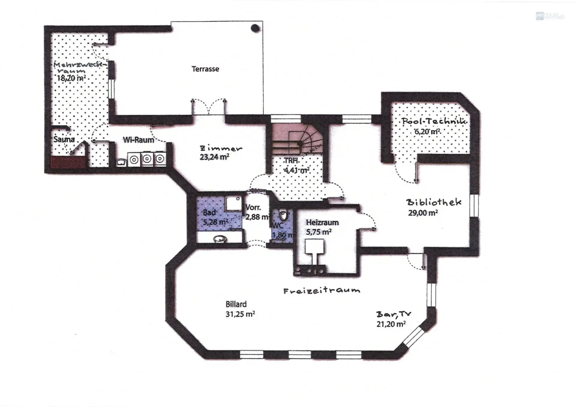 •Freizeitraum mit Billardtisch, Bar, TV-Bereich