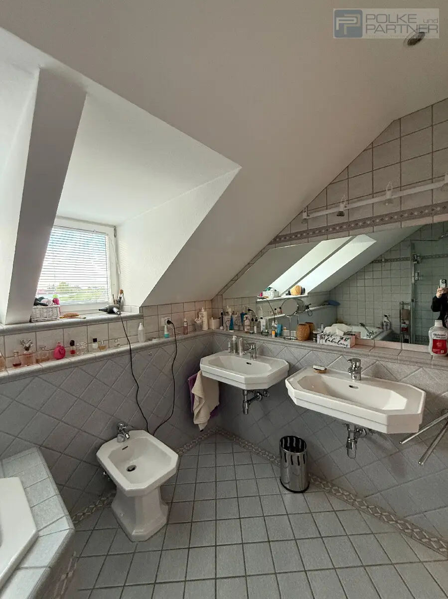 •Bad mit Whirlpoolbadewanne, Dusche, Bidet und zwei Waschbecken