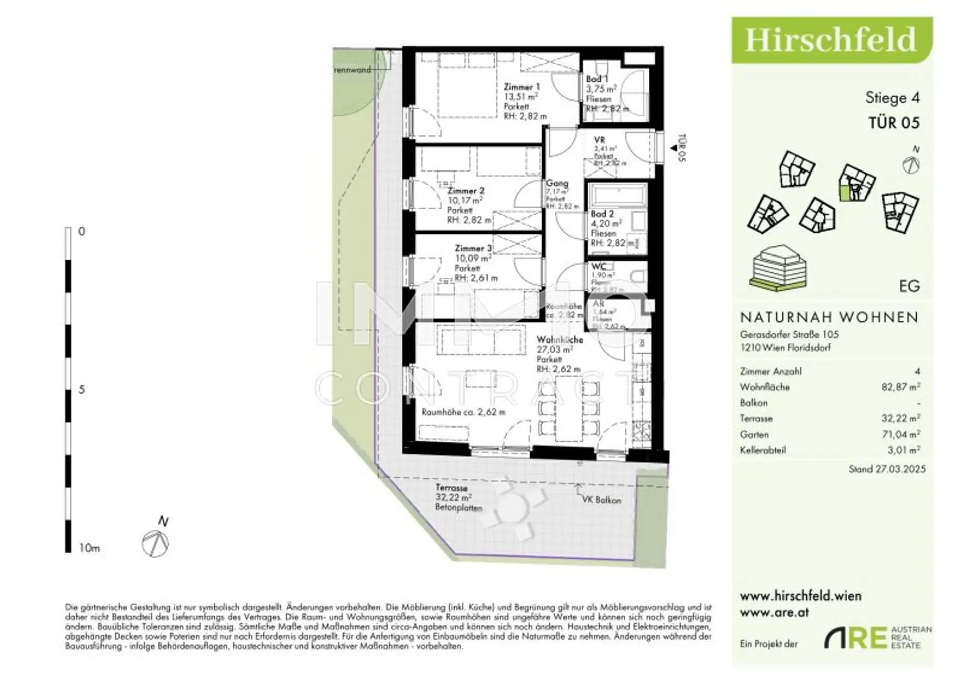 Am Rande eines weitläufigen Grünzugs, der sich bis zum Bisamberg erstreckt, entsteht im naturnahen Hirschfeld ein einzigartiges Wohnquartier: Auf drei Bauplätzen entwickelt sich ein modernes Architektur-Ensemble mit elf Gebäuden und rund 440 Wohnungen – ideal für alle, die Ruhe im Grünen mit urbaner Lebensqualität verbinden möchten.