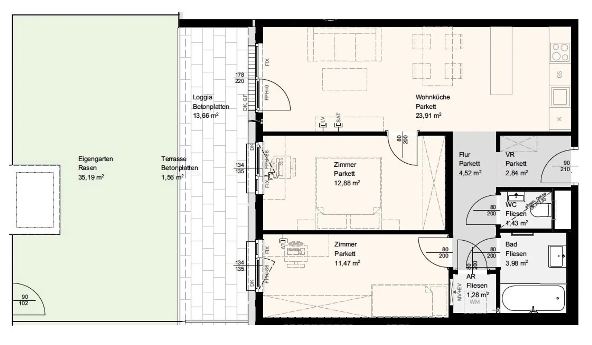 Weitere Wohnungen in der Anlage frei zwischen 39m2 und 82m2 ( Gartenwohnungen, 1.bis 3. Stock) wählbar, mit Freiflächen und zusätzlicher Anmietung eines Stellplatzes.