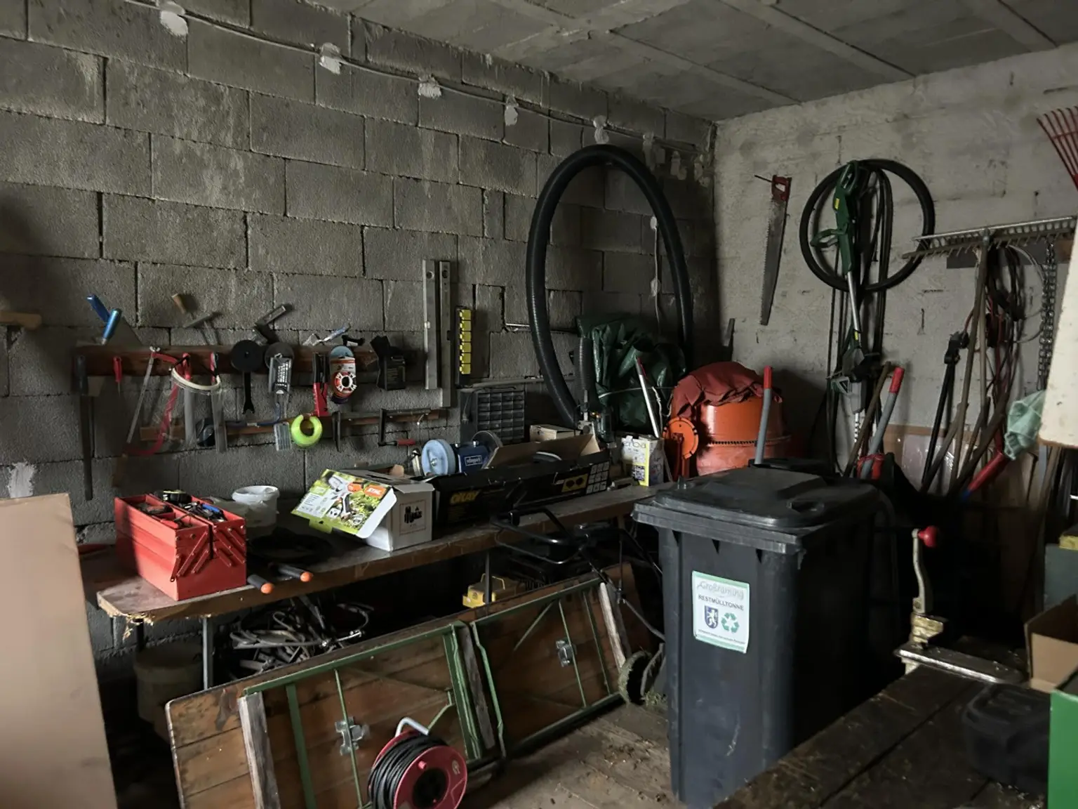 auch eine Werkstatt, Doppelgarage, urige Waldgartenhütte und eine ziemlich neuwertige große Küche. Es gibt eine gut funktionierende Ölheizung