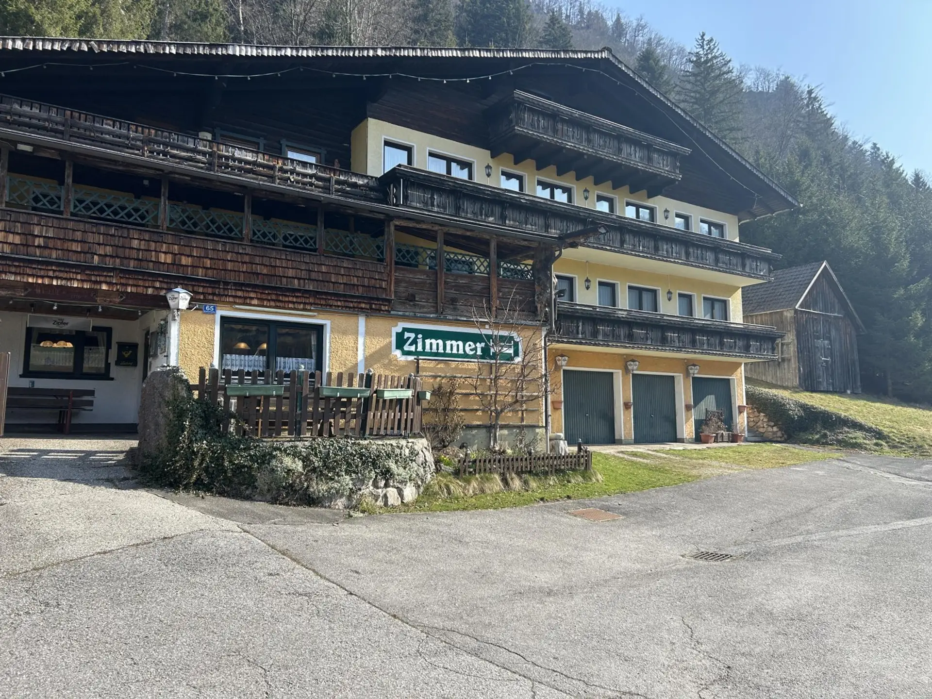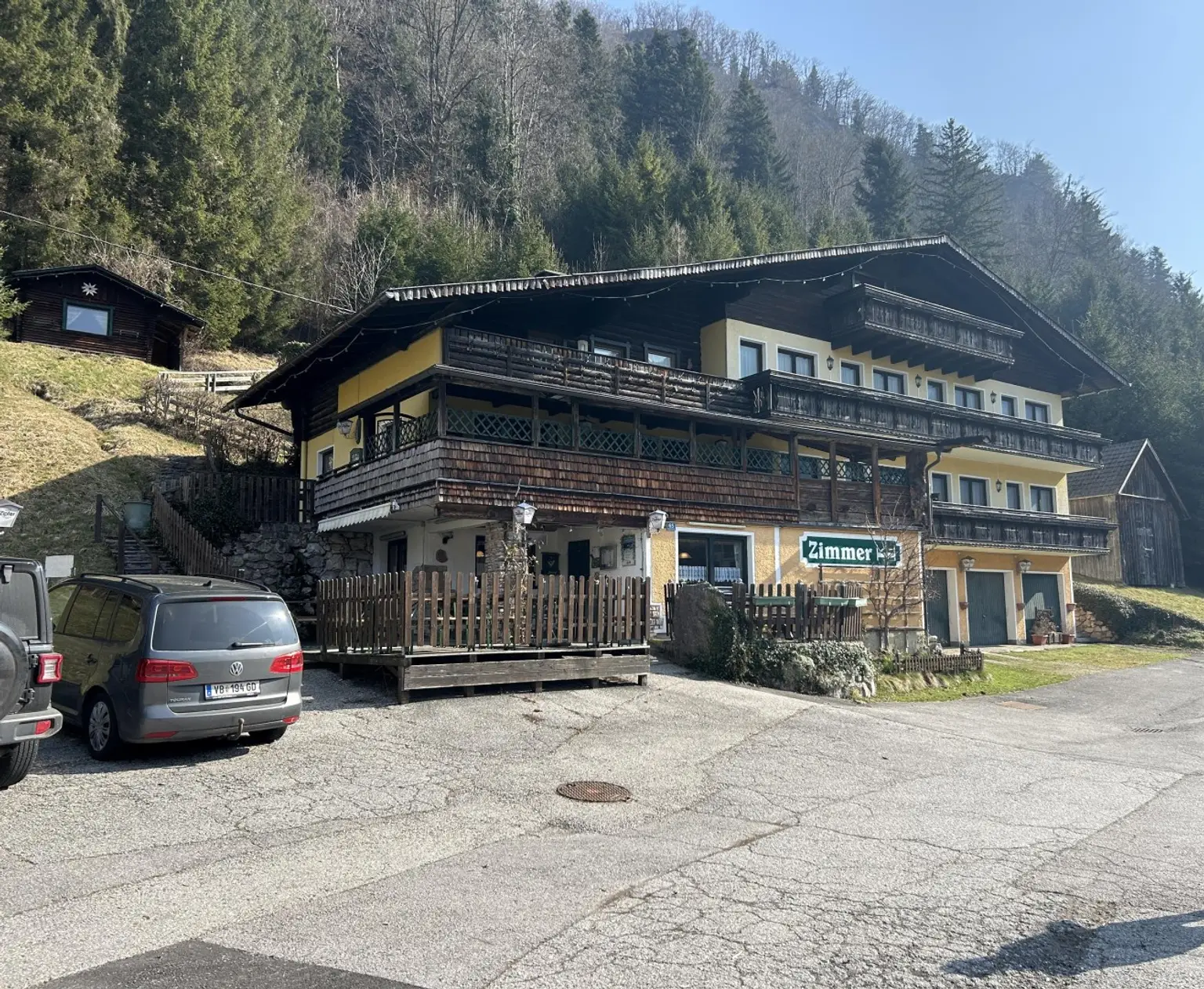 Das Gasthaus ist noch aktiv und hat eine aufrechte Betriebsanlagengenehmigung. Es gibt ausreichend Parkplätze