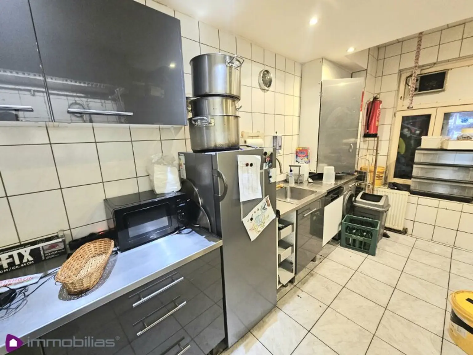 Vorhanden sind: Kühlschrank, Tiefkühlschrank, Küchenmaschine, Registrierkasse, Faschiermaschine, Herd, Geschirrspüler, Eiswürfelautomat, Kaffeemaschine, Radio, Mikrowelle, Küchenschränke, Tische, Sessel, Geschirr in ausreichender Menge