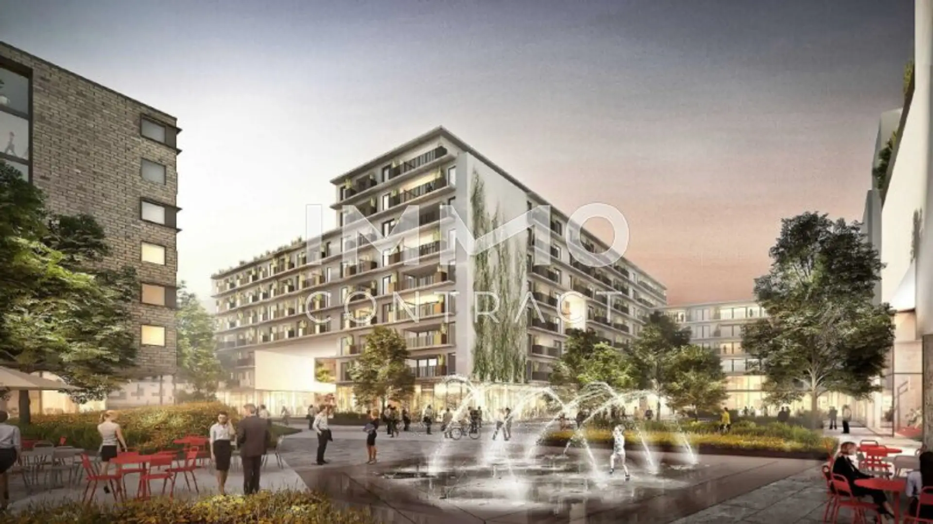 Der vorgelagerte Platz mit Wasserspielen, Sitzbereichen und Grünflächen schafft eine einladende Atmosphäre und erhöht die Aufenthaltsqualität. Die Gastronomie profitiert von: