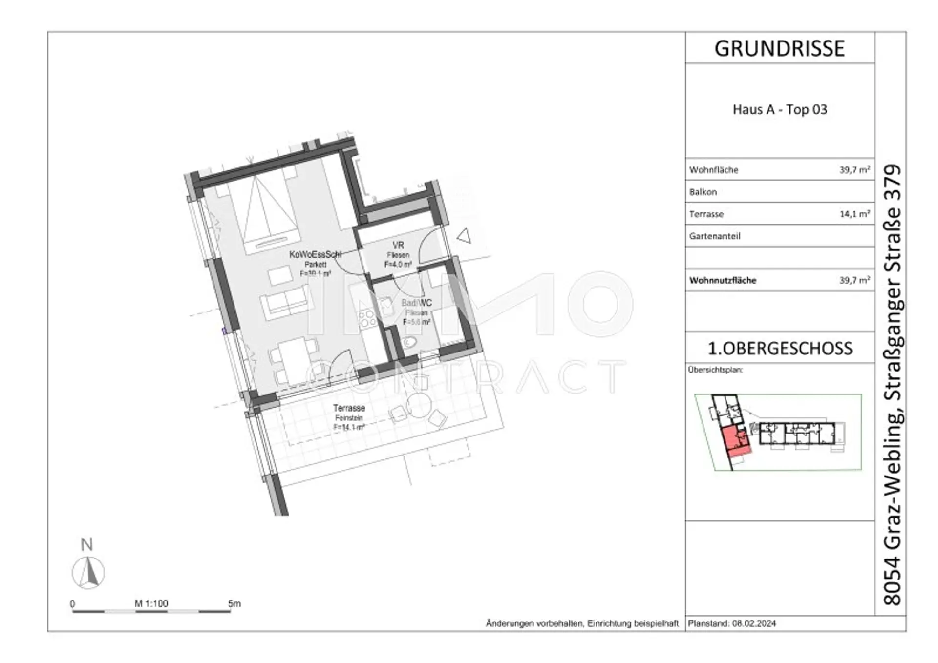 Das moderne Wohnhaus liegt in der Straßganger Straße 379a im Bezirk Straßgang, einem beliebtem Wohnbezirk in Graz. Die Anbindung an das öffentliche Verkehrsnetz ist sehr gut. Einkaufsmöglichkeiten, Schulen und Kindergärten sind in der nahen Umgebung vorhanden und fußläufig erreichbar. Durch die gute Lage und Anbindung ist die Grazer Innenstadt ebenfalls schnell zu erreichen. Naherholungsgebiete sind in der Nähe auch vorhanden und ebenfalls fußläufig erreichbar. Bei Bedarf ist man auch in kürzester Zeit auf der Autobahn.