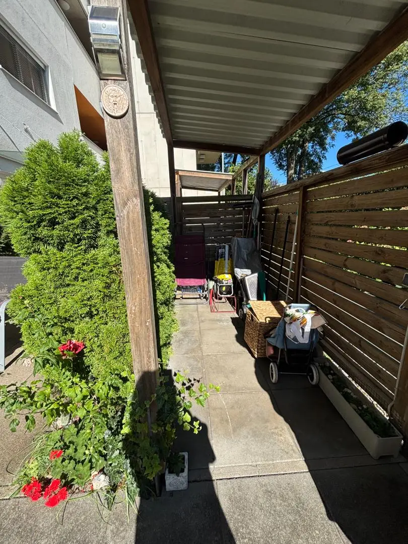 Die Immobilie verfügt über einen eigenen, abgeschlossenen Vorgartenbereich mit fast 30m2 und einen überdachten Eingangsloggiabereich, der ost-seitig orientiert ist und perfekt geeignet ist, um den Morgen-Kaffee in der Sonne zu genießen.
