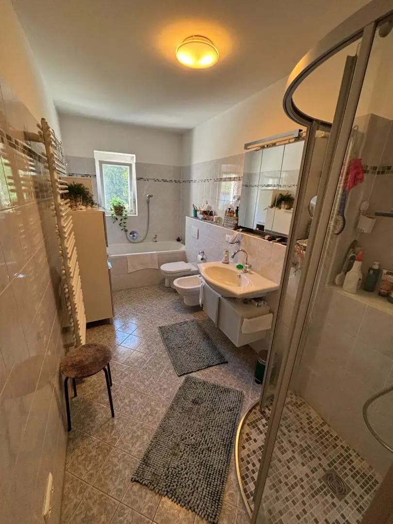 Weiters befindet sich im Obergeschoß ein geräumiges Badezimmer mit Wanne, WC, Bidet, Dusche, Sprossenheizkörper und Fenster. Ein weiterer Abstellraum im ersten Obergeschoß bietet viel Abstellfläche und Stauraum.