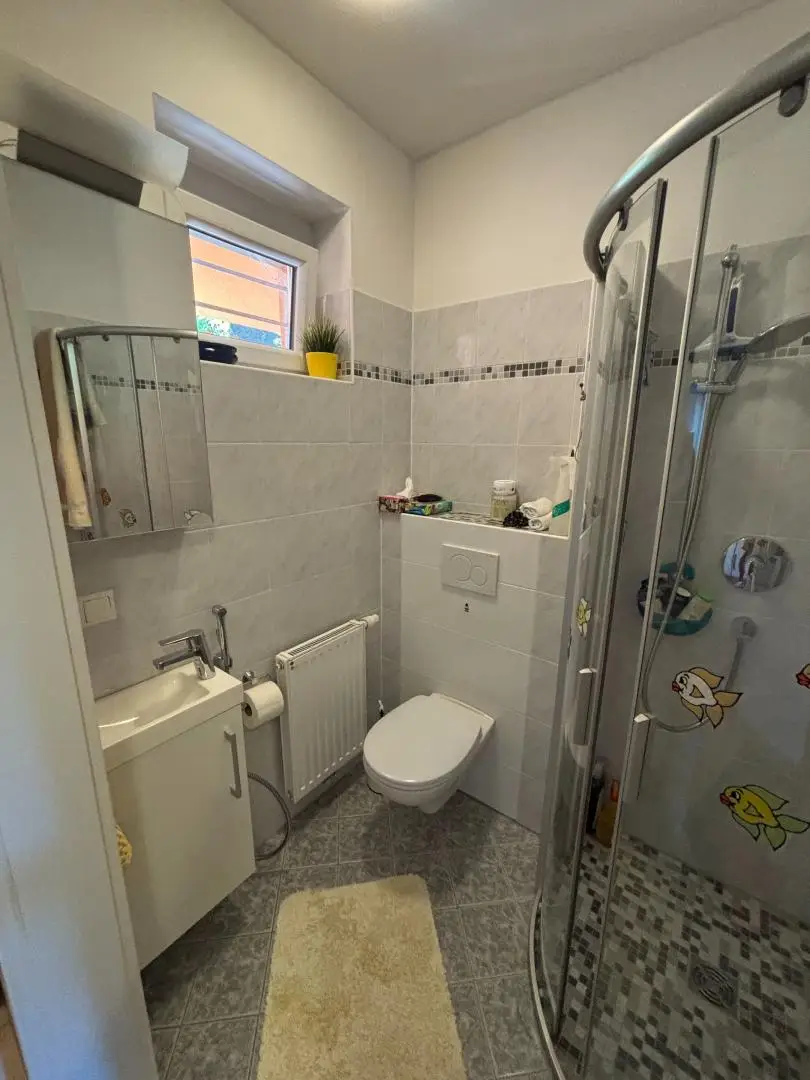 Weiters befindet sich ein Gästebad mit Dusche und WC und Fenster im Erdgeschoß der Wohnung.