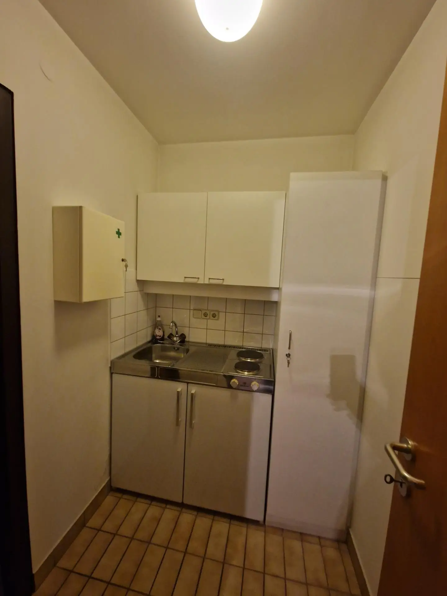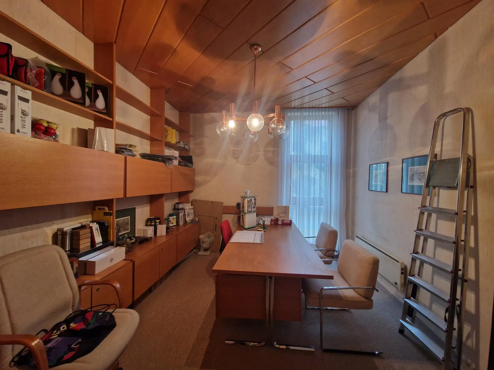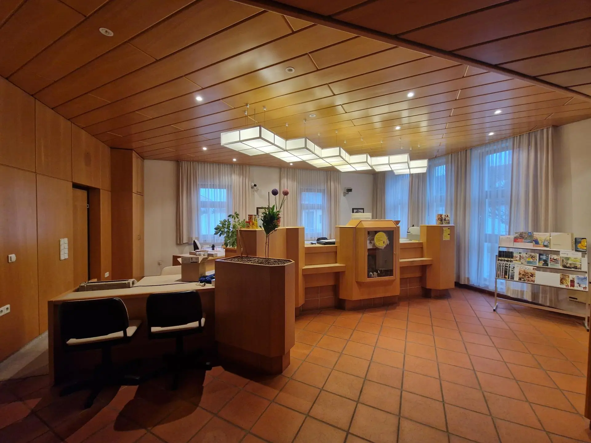 Im Erdgeschoss begrüßen Sie ein helles Foyer, die ehemalige Kassenhalle sowie ein Büro- Sanitär- und Lagerraum sowie eine kleine Teeküche.