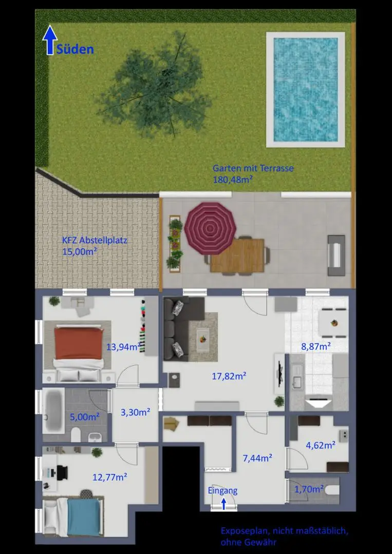 . Garten im Eigentum, eingezäunt und mit zusätzlichem Zugang vom eigenen Parkplatz aus