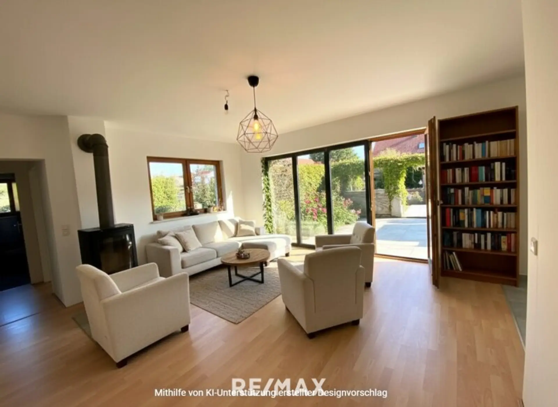. zusätzlich beheizbarer Schwedenofen im Wohnzimmer