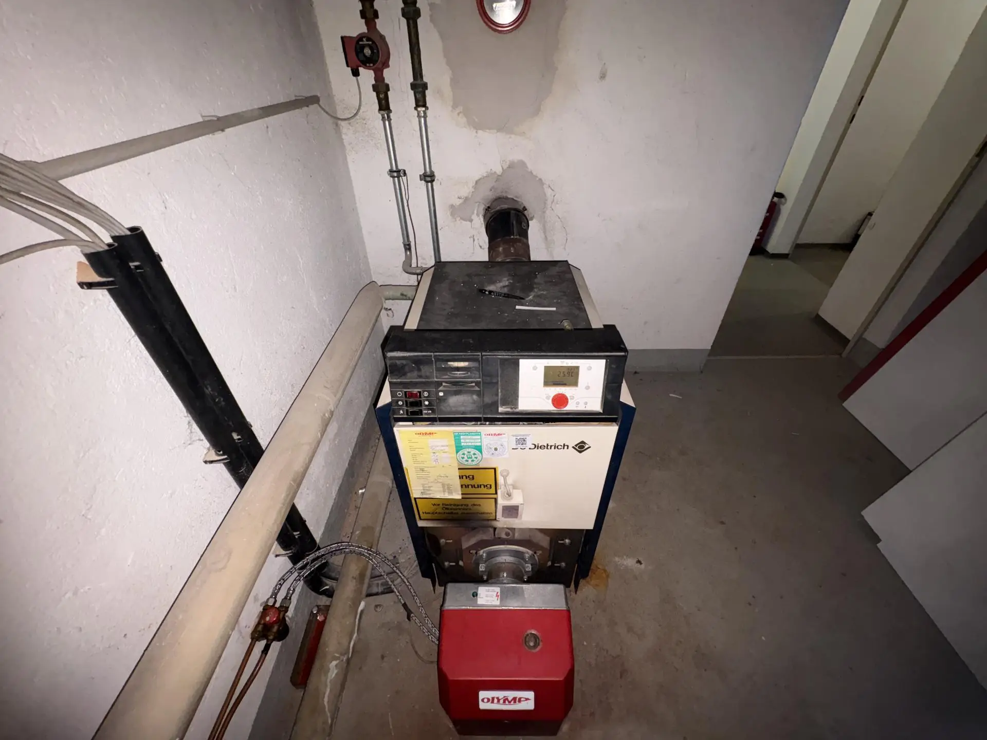 Das Kellergeschoss beinhaltet neben dem Tresorraum, den Heizraum und diverse Lagerräume. Beheizt wird die Gesamtliegenschaft derzeit kostengünstig anhand einer Ölzentralheizung.