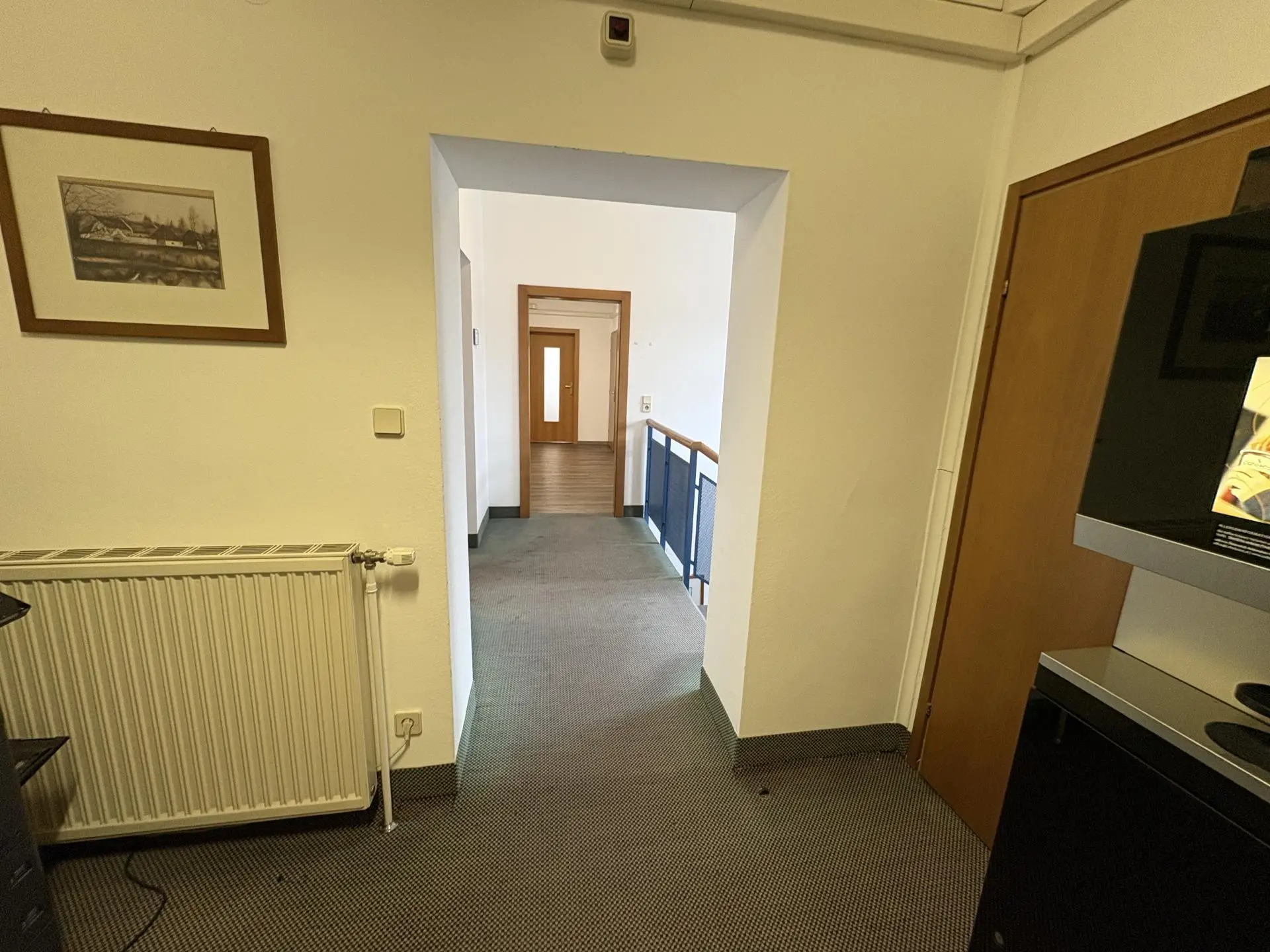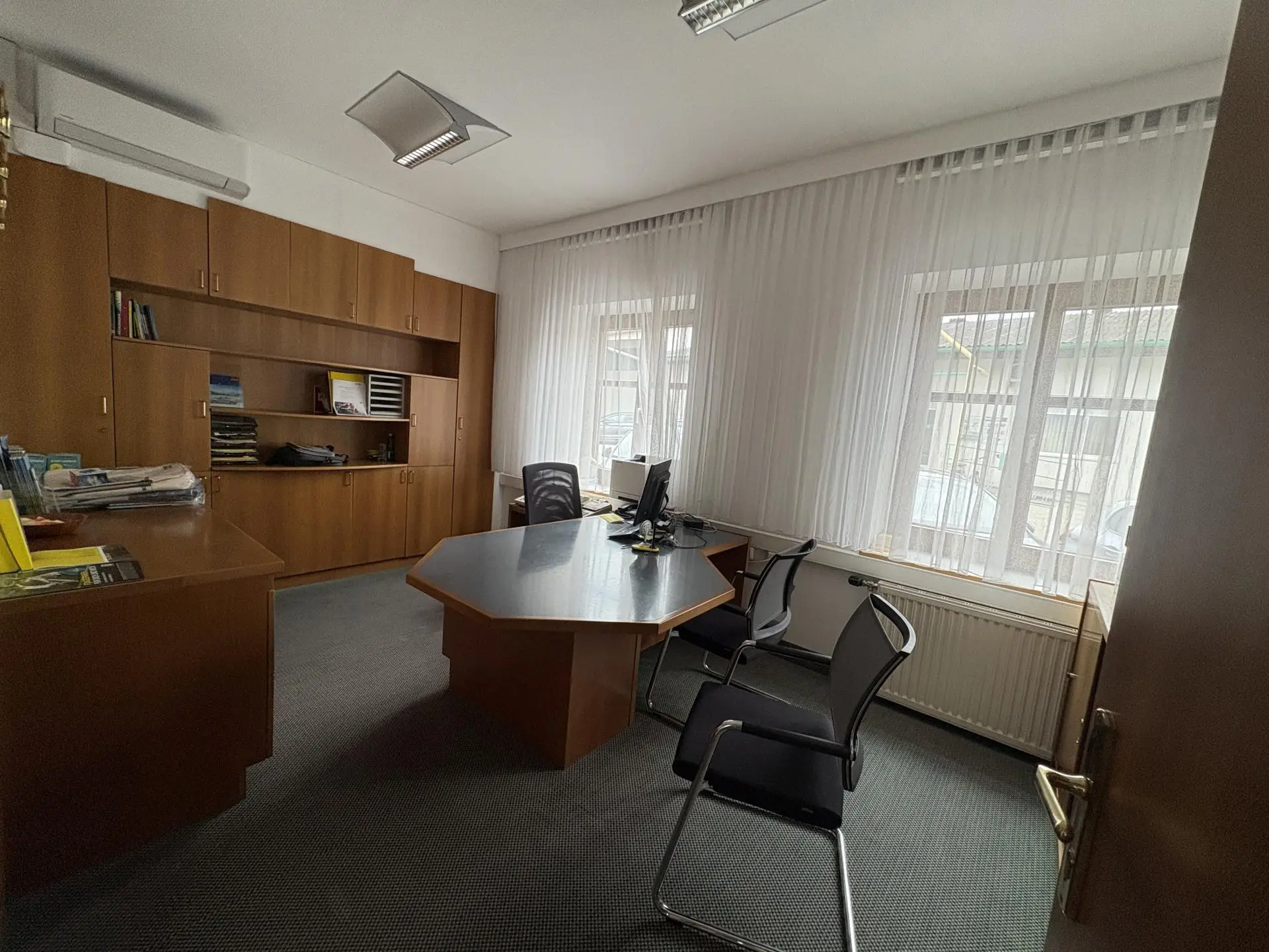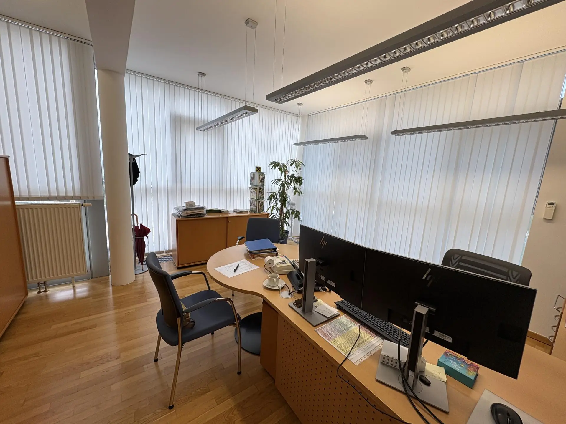 Im Obergeschoss stehen neben einem Sitzungssaal, eine Vielzahl an Büroräumlichkeiten, ein Aufenthaltsraum, eine Teeküche sowie diverse Lagerräumlichkeiten und Sanitärräume zur Verfügung.