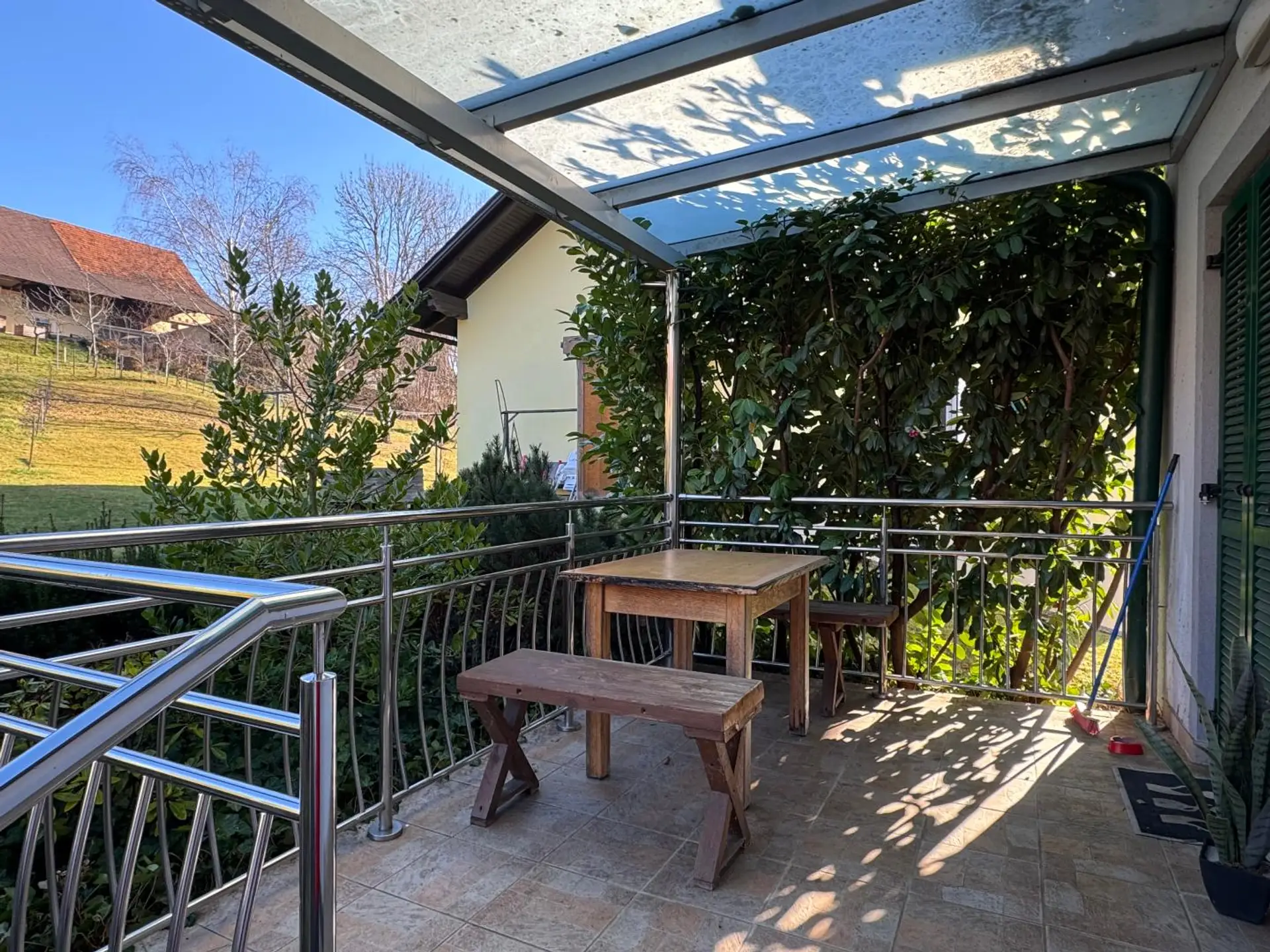 Die Liegenschaft mit ihrem überdimensionalen, sehr gepflegten Wirtschaftsgebäude steht an einem Platz, welcher Stimmigkeit und Ruhe ausstrahlt.