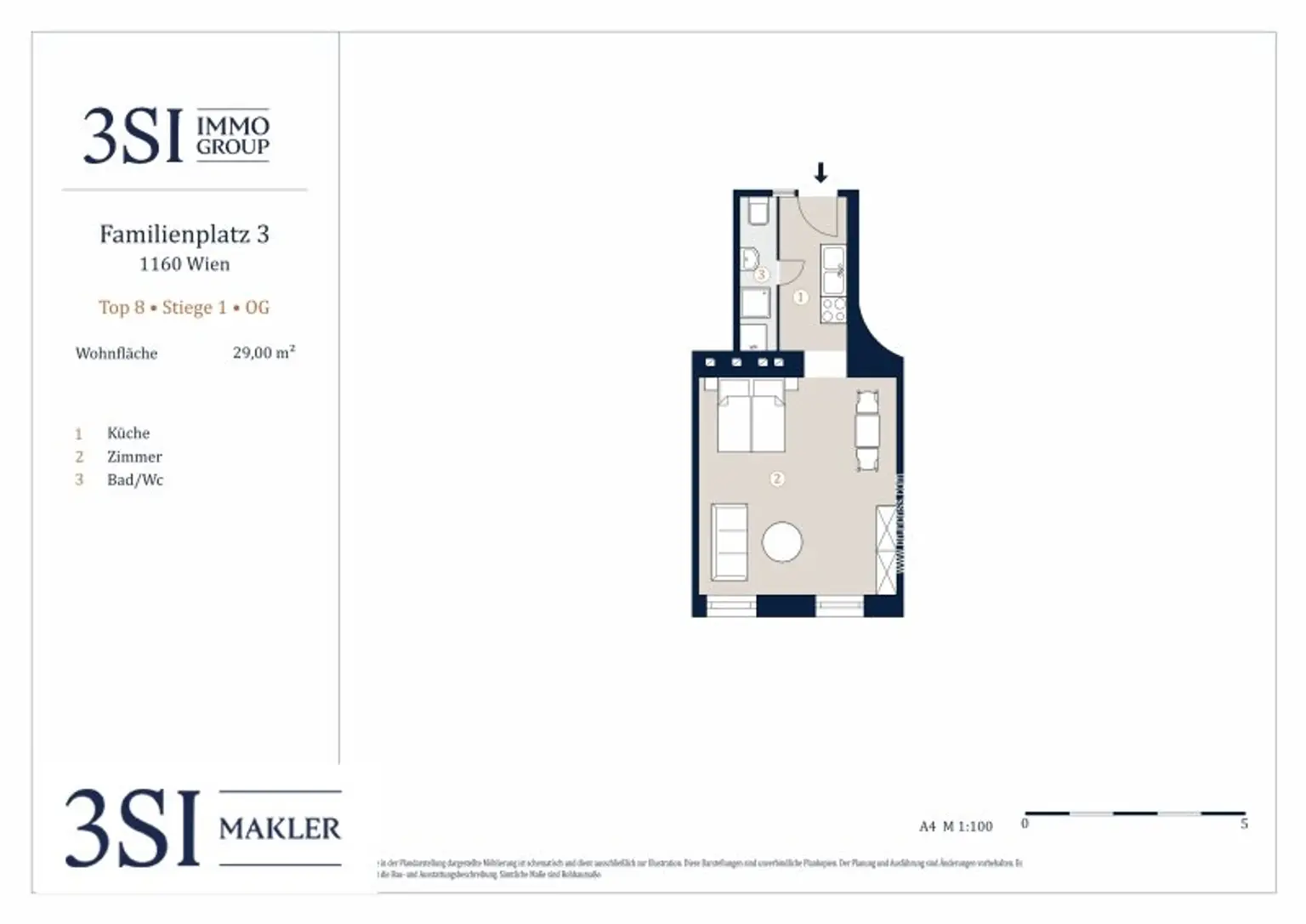Diese teilmöblierte 1 Zimmer-Wohnung befindet sich im 1. Obergeschoß, verfügt über eine Wohnfläche von ca. 29m² und teilt sich wie folgt auf: