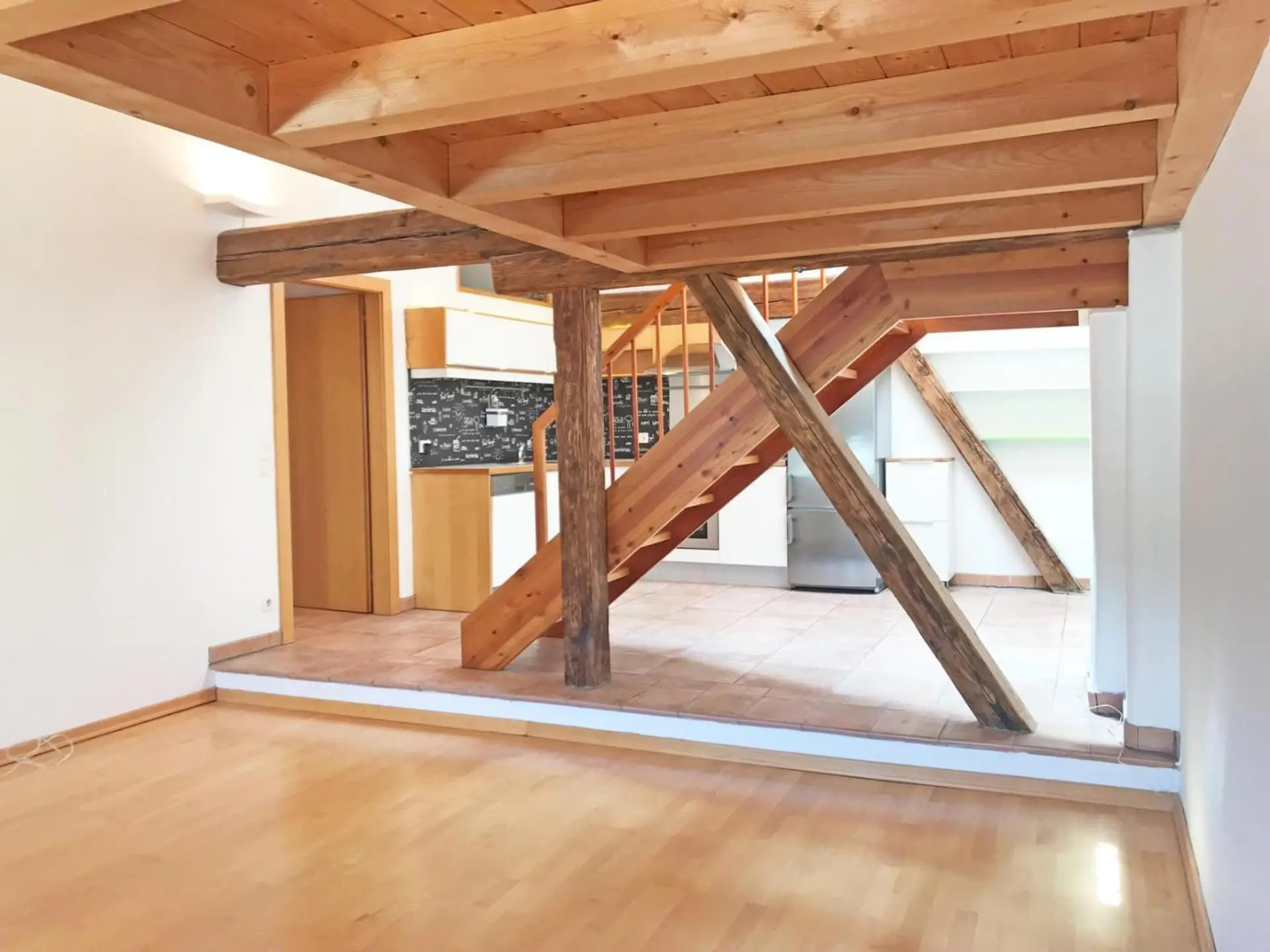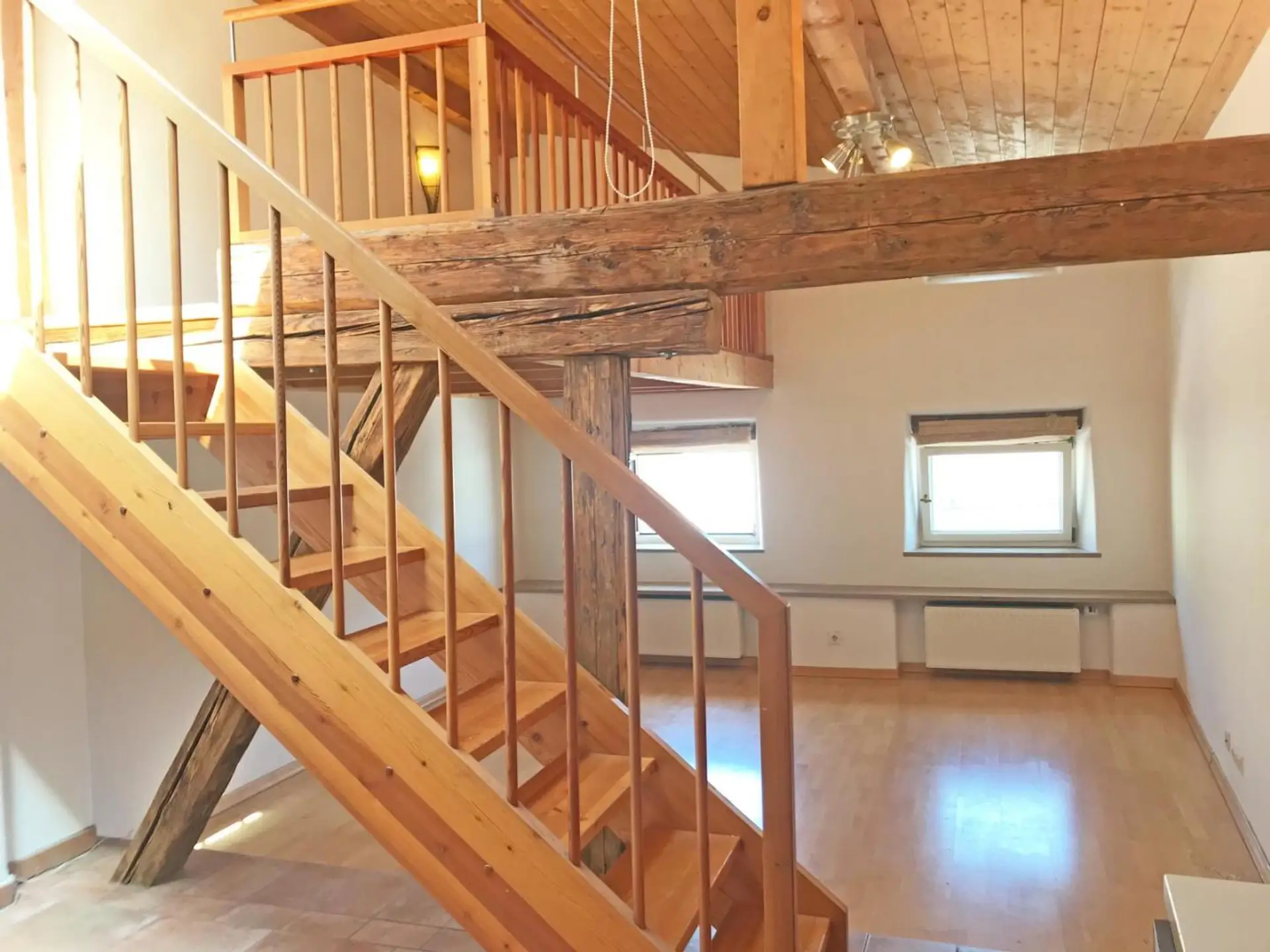 Bezaubernde 2-Zimmer-Wohnung im Herzen von Hallein in einem privaten Altstadthaus. Das Objekt befindet sich im 3. OG des Hauses, ein Lift ist vorhanden. Die Größe beträgt 71 m² und gliedert sich in einen Wohn-/Essbereich mit komplett eingerichteter Küche, ein Schlafzimmer, ein Badezimmer mit Badewanne/Dusche, großem Handtuchtrockner, Waschmaschinenanschluss, ein separates WC, sowie einen Vorraum. Über dem Wohnzimmer befindet sich eine 8 m² große, helle Galerie.