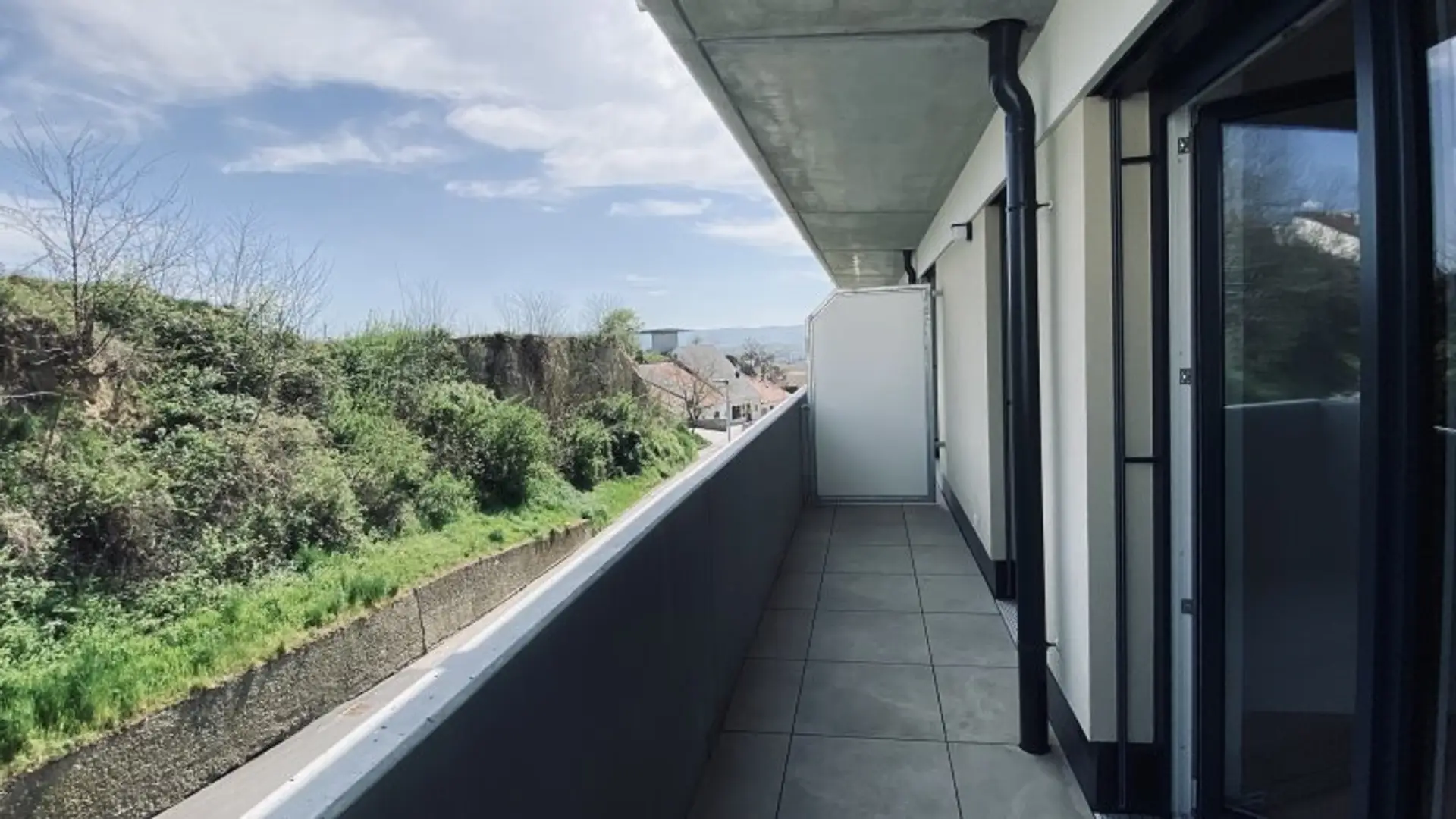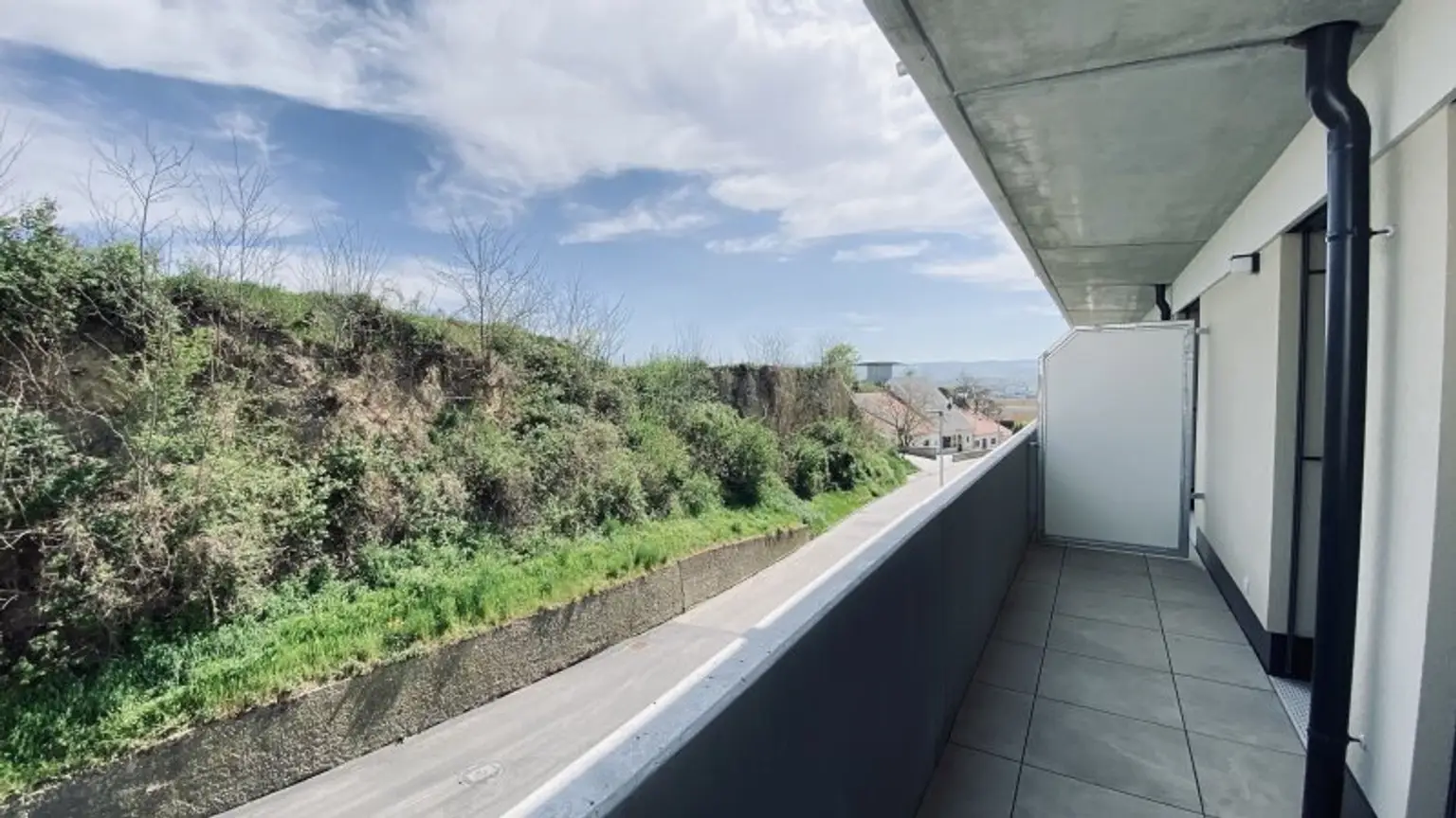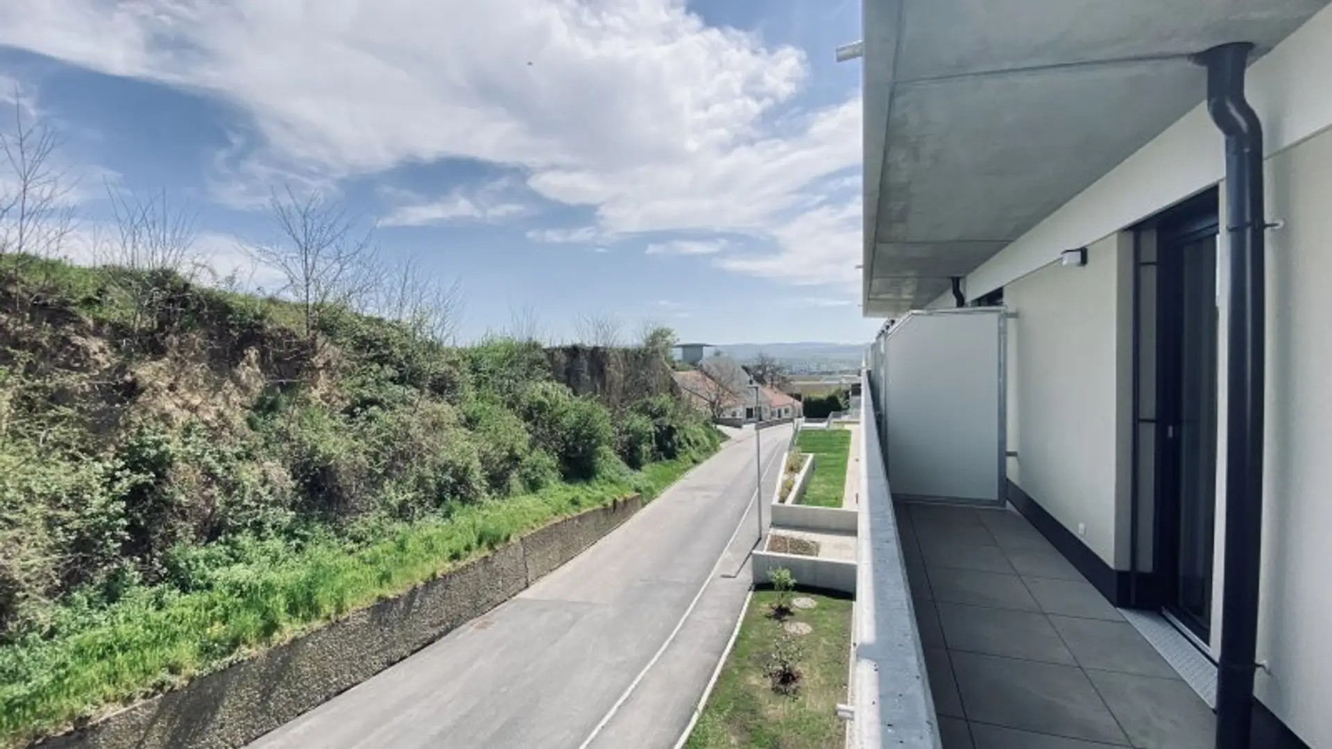 Die Wohnungen sind umgeben von Grünflächen und Weingärten.