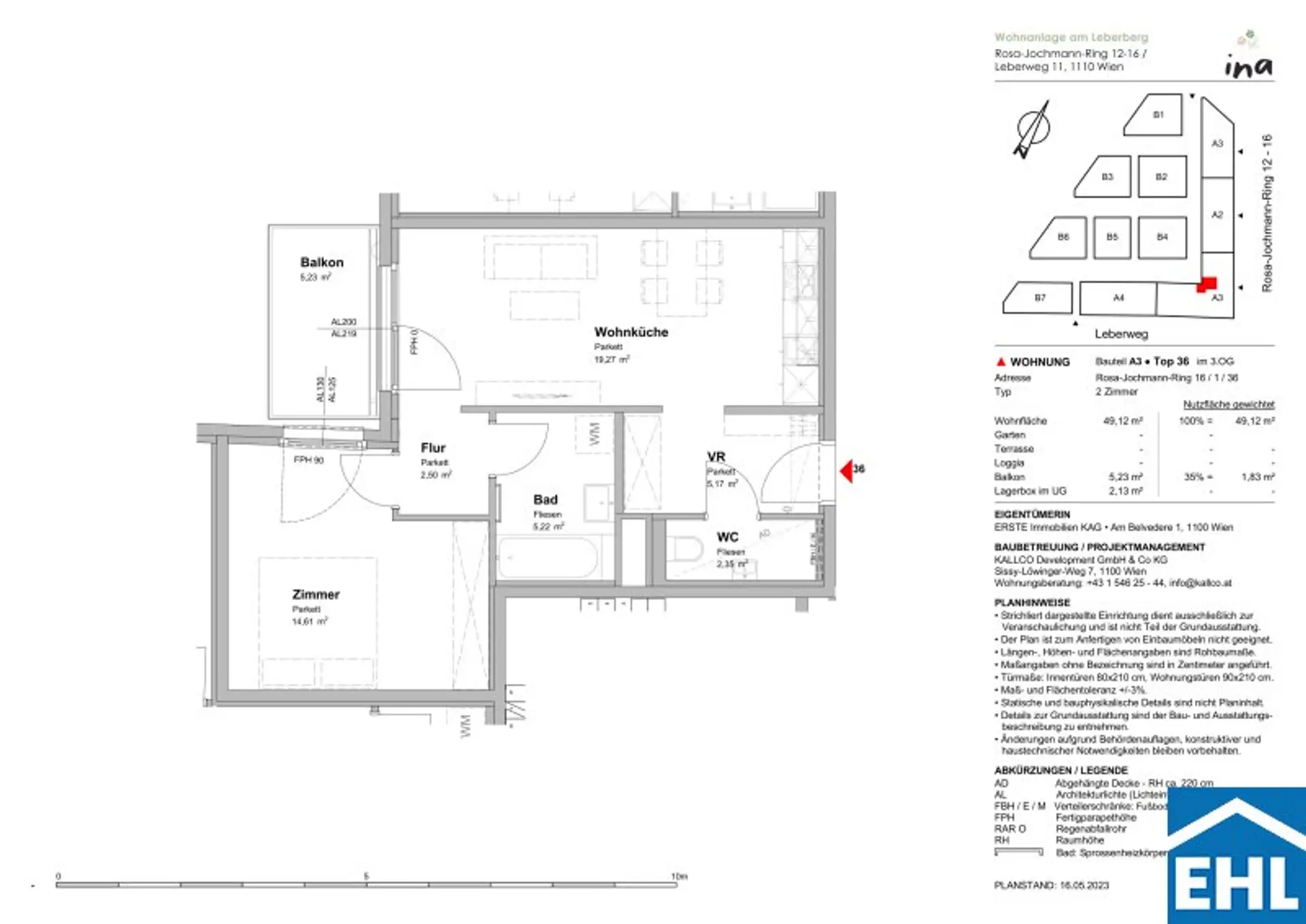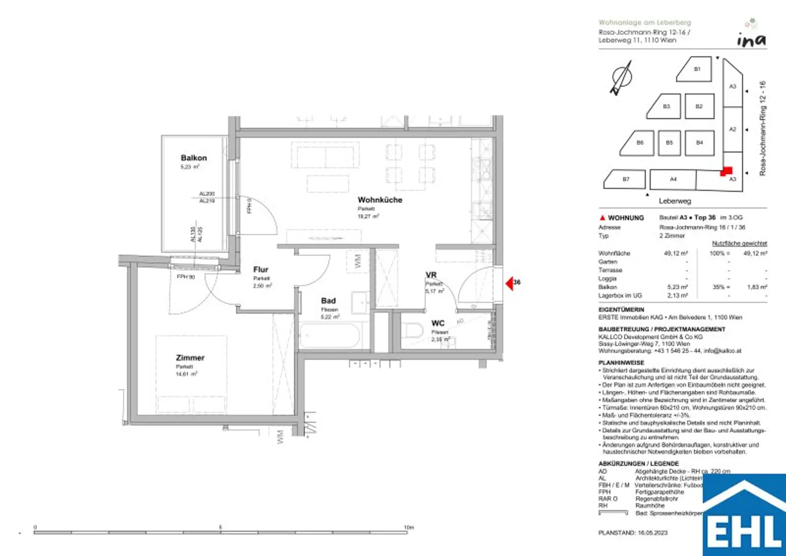 Die Wohnung selbst befindet sich in der 3. Etage und gliedert sich in eine geräumige Wohnküche mit vollausgestatteter Einbauküche, ein Schlafzimmer mit Schrankabteil, ein Badezimmer mit Badewanne und Waschmaschinenanschluss, einem separatem WC, sowie einen Vorraum. Der vom Wohnbereich und Schlafzimmer begehbare Balkon lädt zum gemütlichen Verweilen im Freien ein und rundet das Wohnerlebnis perfekt ab.