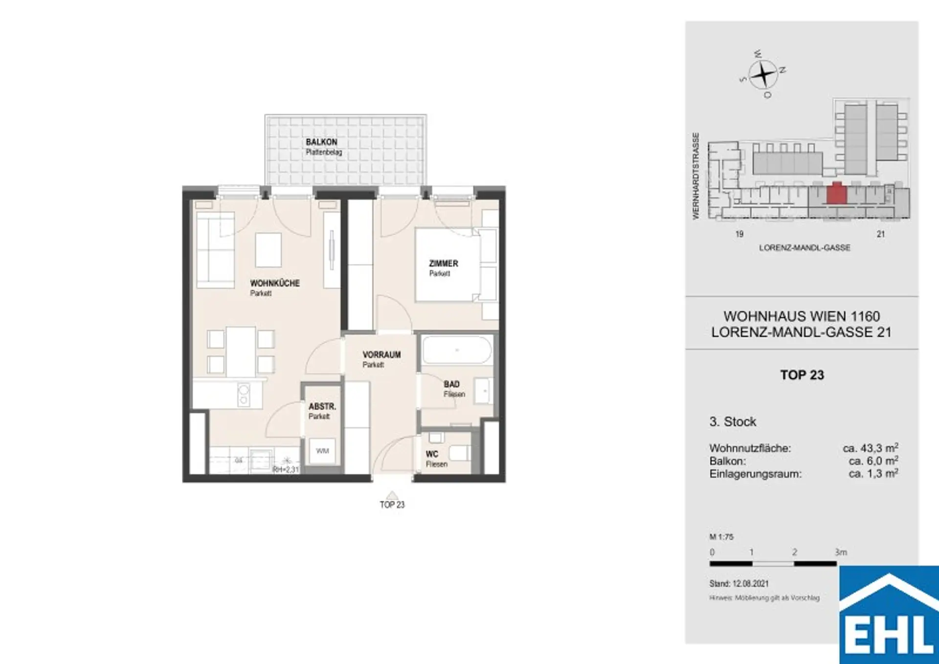 Die Wohnung befindet sich im 3.OG und verfügt über einen großzügigen Wohnraum mit voll ausgestatteter Küche, ein Schlafzimmer, ein Badezimmer mit Badewanne, ein separates WC, einen Abstellraum mit Waschmaschinenanschluss, sowie einen Vorraum. Der dazugehörige Balkon rundet das Wohnerlebnis perfekt ab!