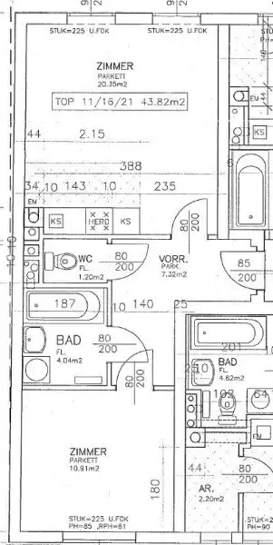 Die 2-Zimmer-Wohnung mit knapp 44m2 Wohnfläche liegt im 2. Liftstock und gliedert sich in folgende, tolle Raumaufteilung: