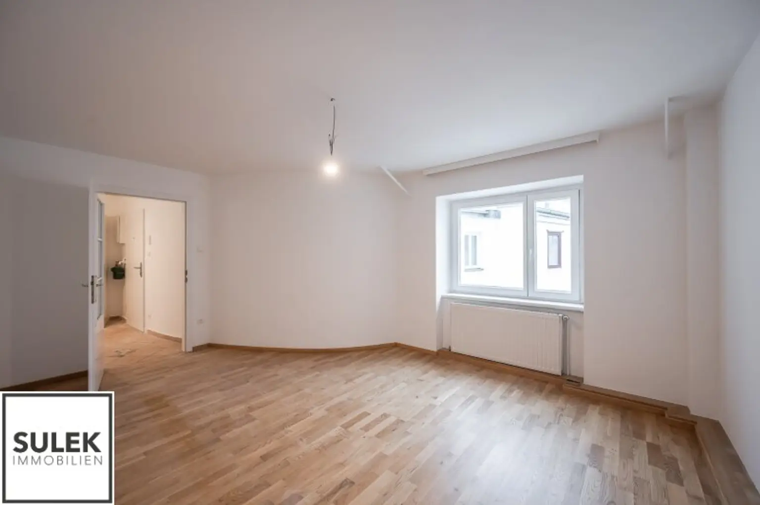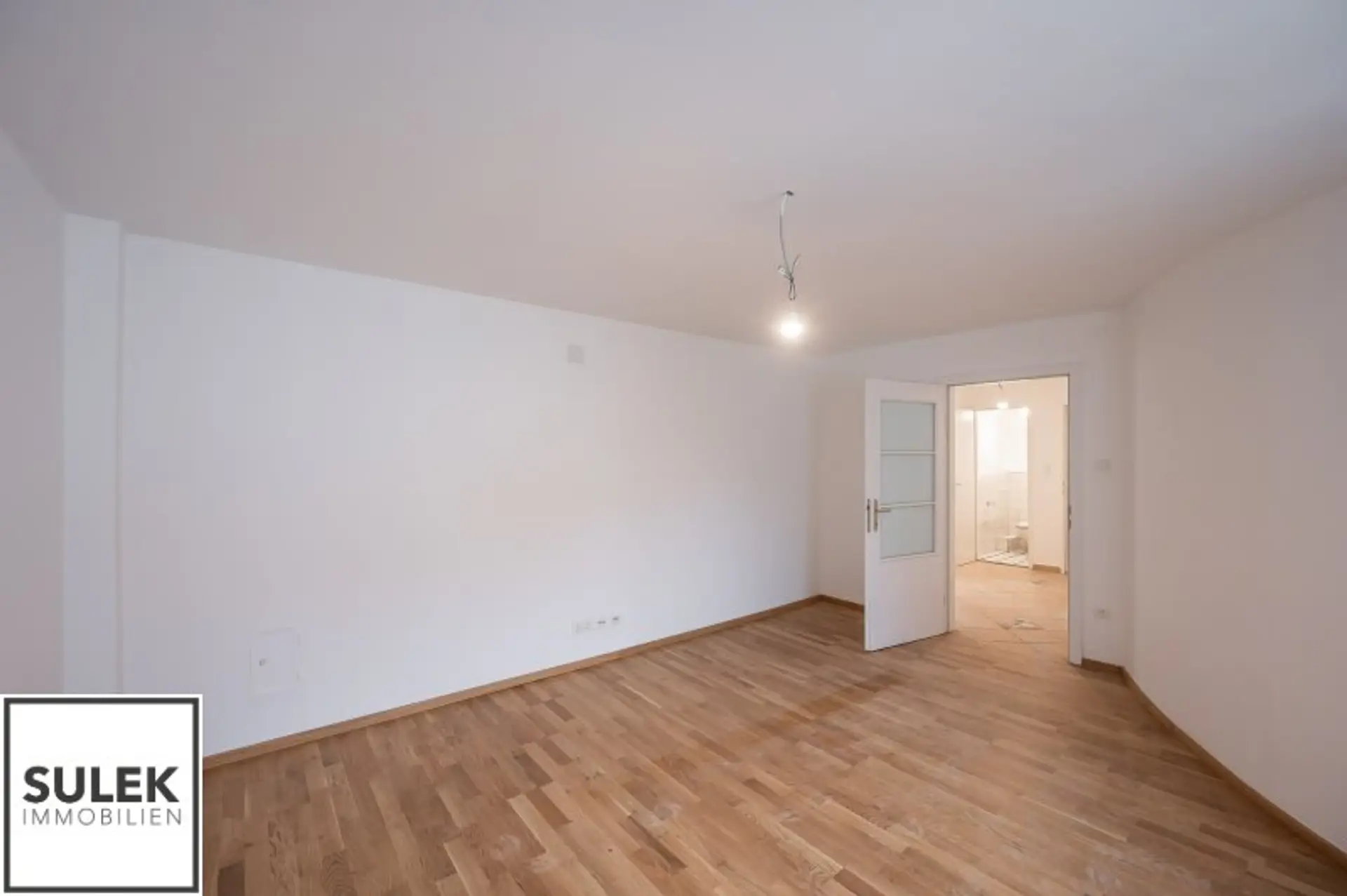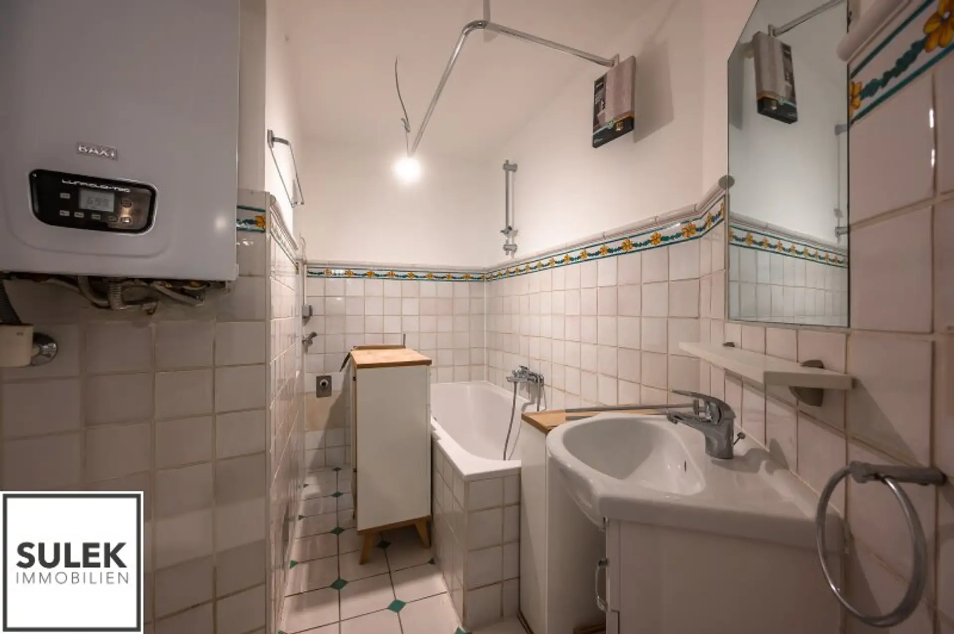 Über den Vorraum sind das Badezimmer mit Badewanne und Gastherme, das separate WC, das hofseitige, gemütliche Schlafzimmer, sowie die großzügige Wohnküche begehbar. Die Wohnküche umfasst eine vollausgestattete, moderne Küche.